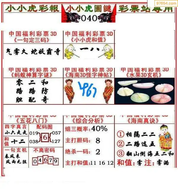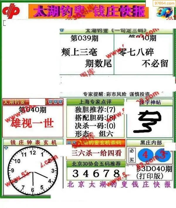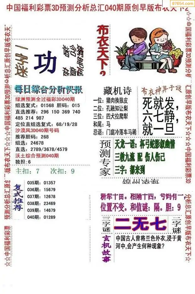 福彩3D040期天牛彩吧套图整合总汇