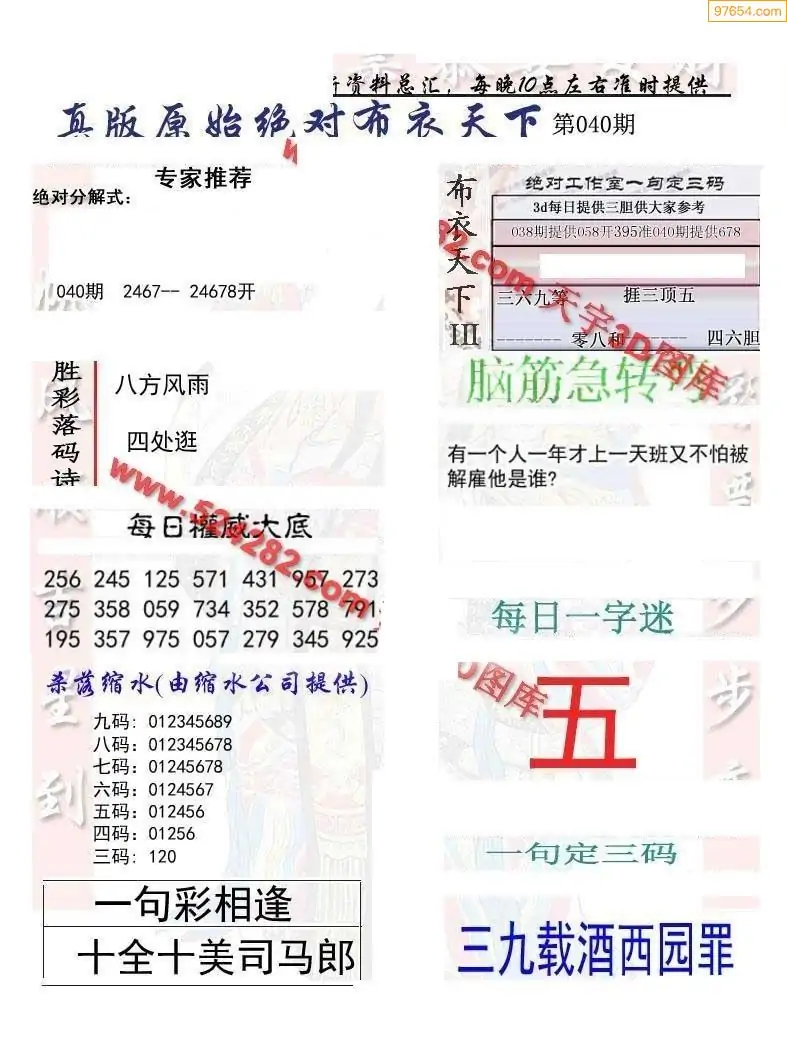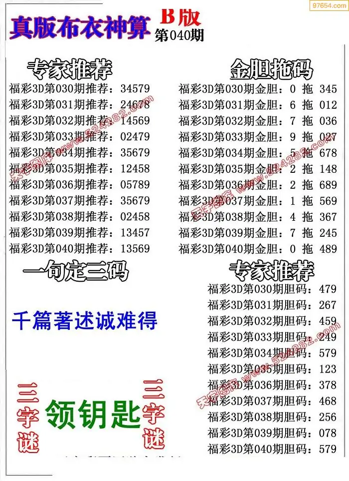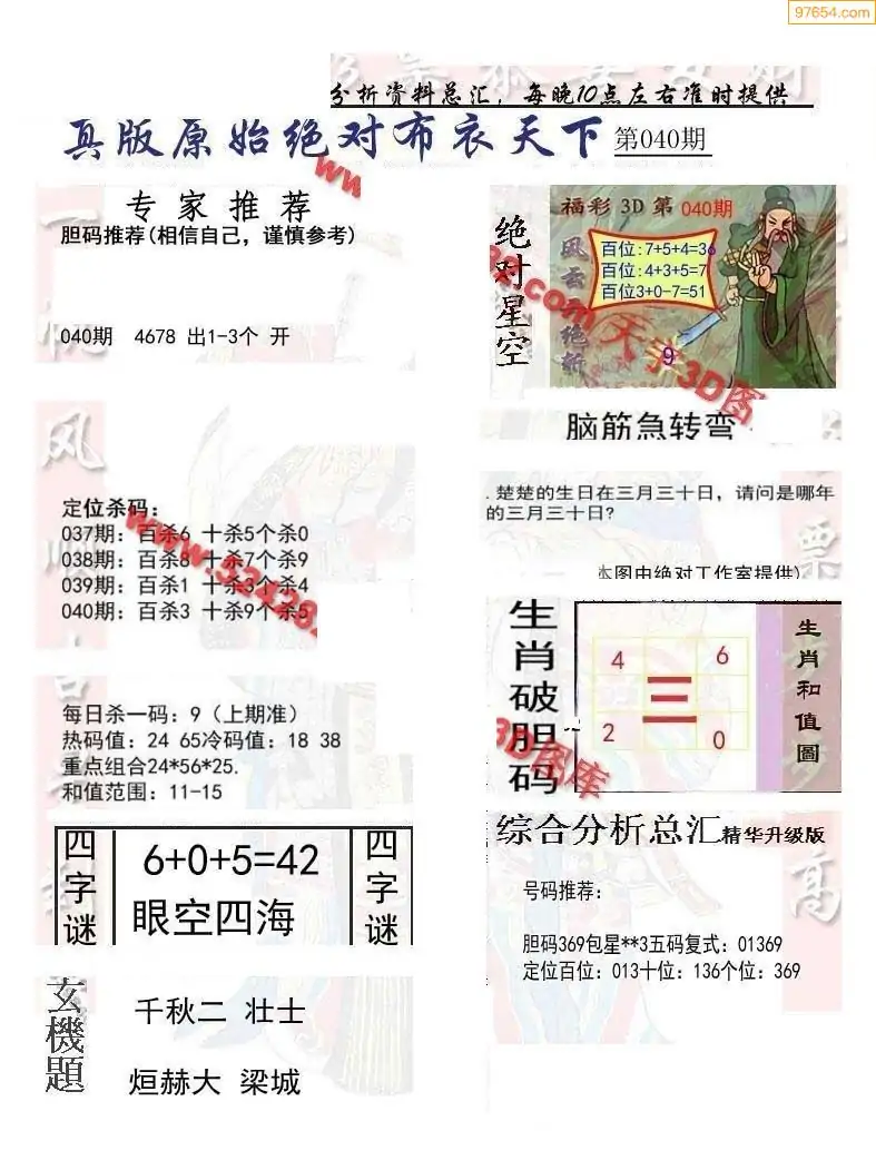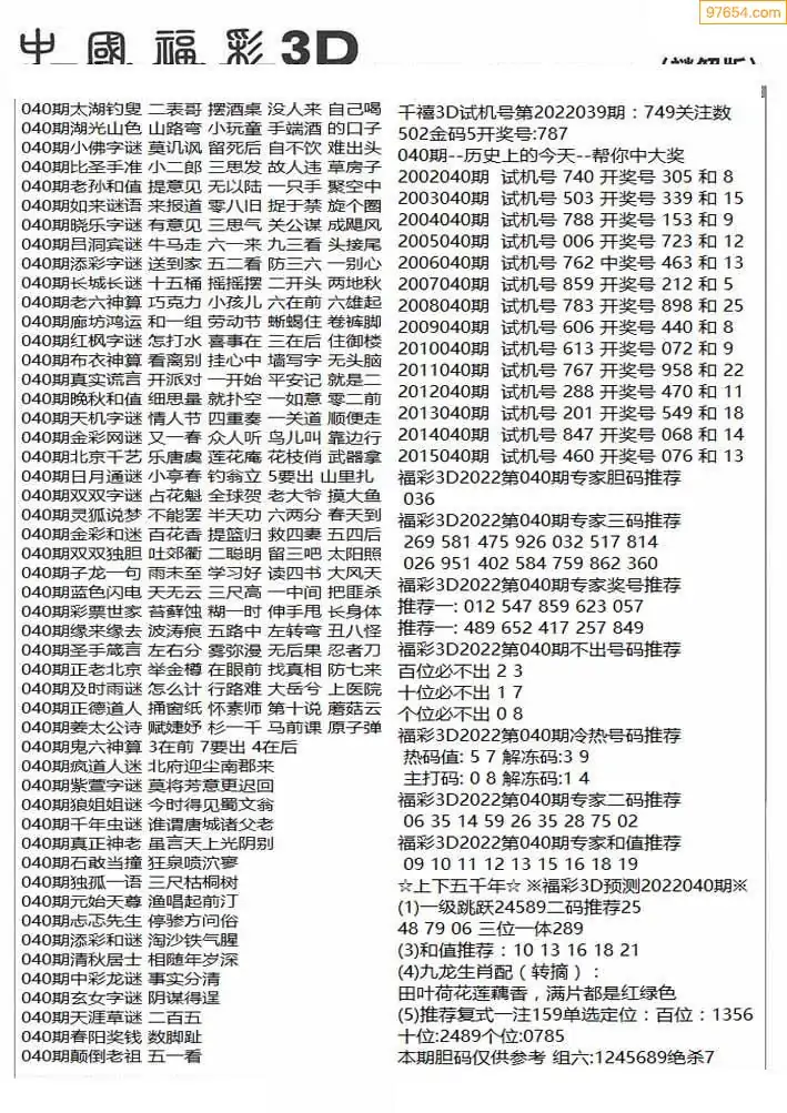 (2)26年040期本期3d图迷汇总_福彩3D图谜总汇图