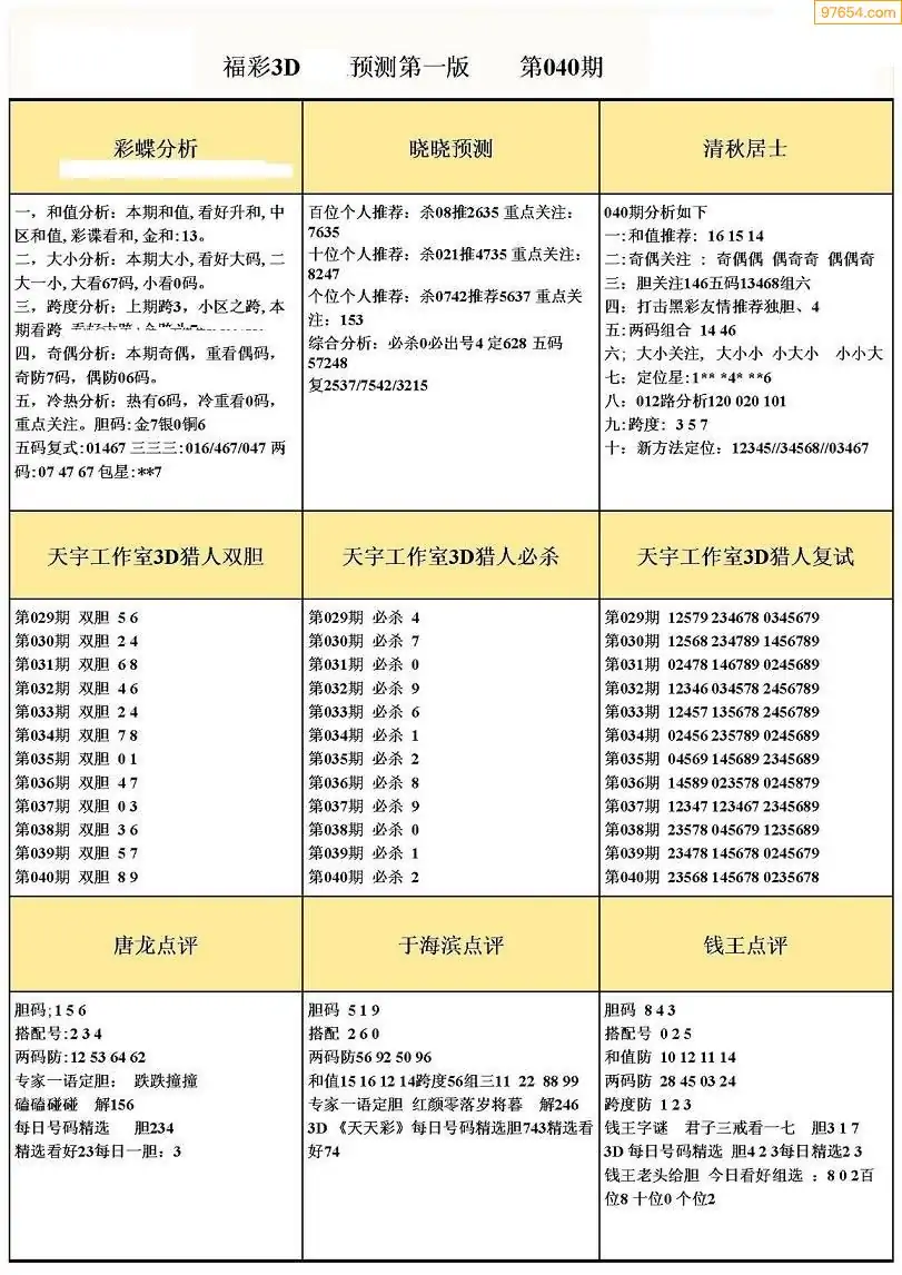 福彩3D040期天牛彩吧套图整合总汇