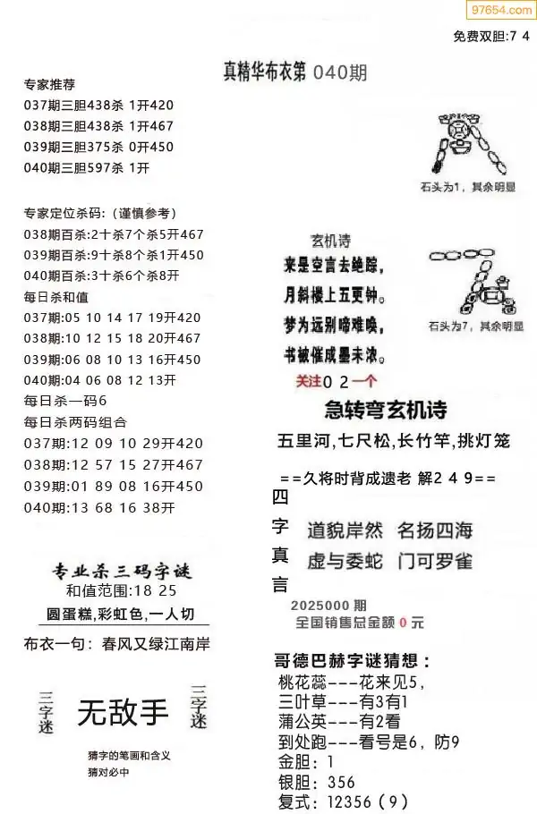 040期真版布衣神算专家推荐