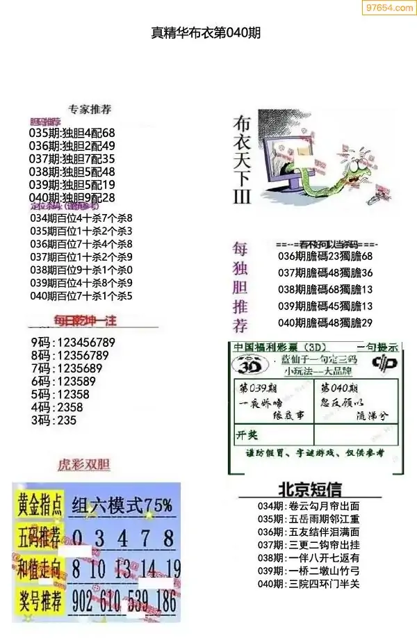 福彩040期3d真精华布衣+布衣早报(转载)