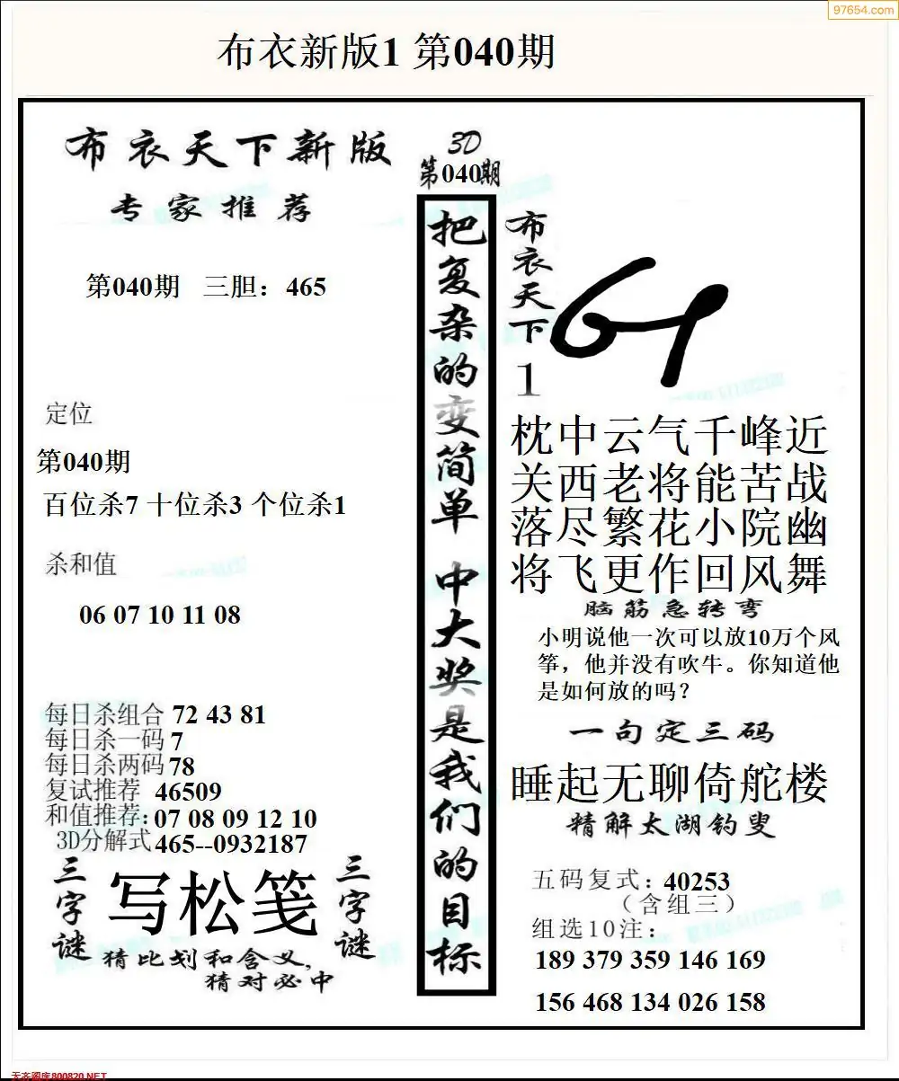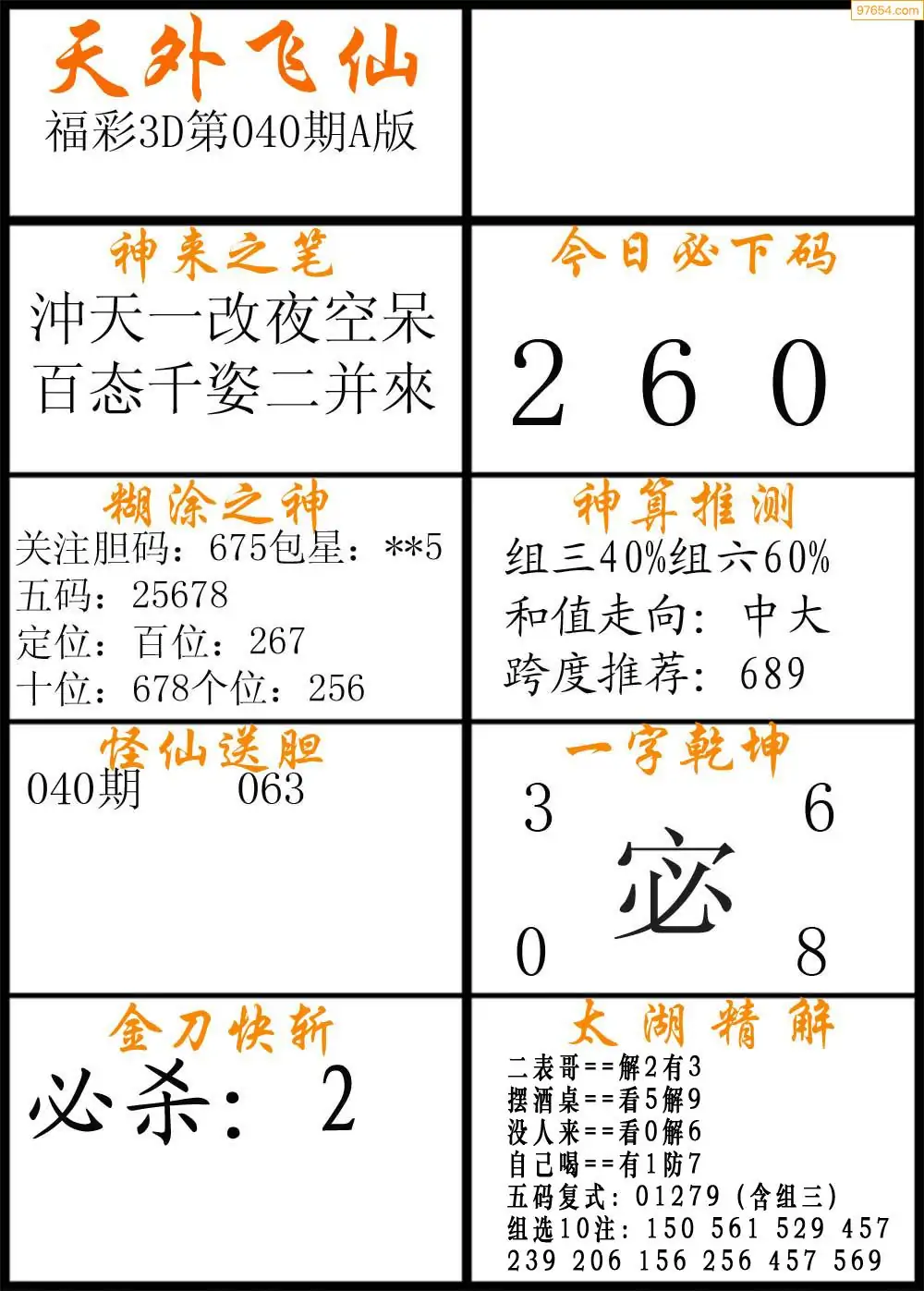 (2)26年040期本期3d图迷汇总_福彩3D图谜总汇图