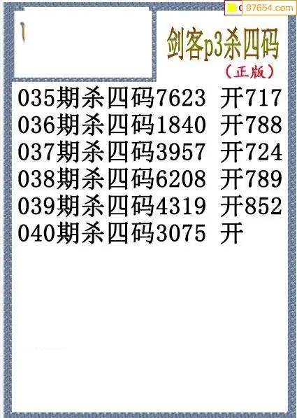 26年040期排三剑客杀码图谜
