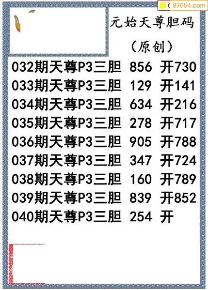 26040期元始天尊排列3胆码图