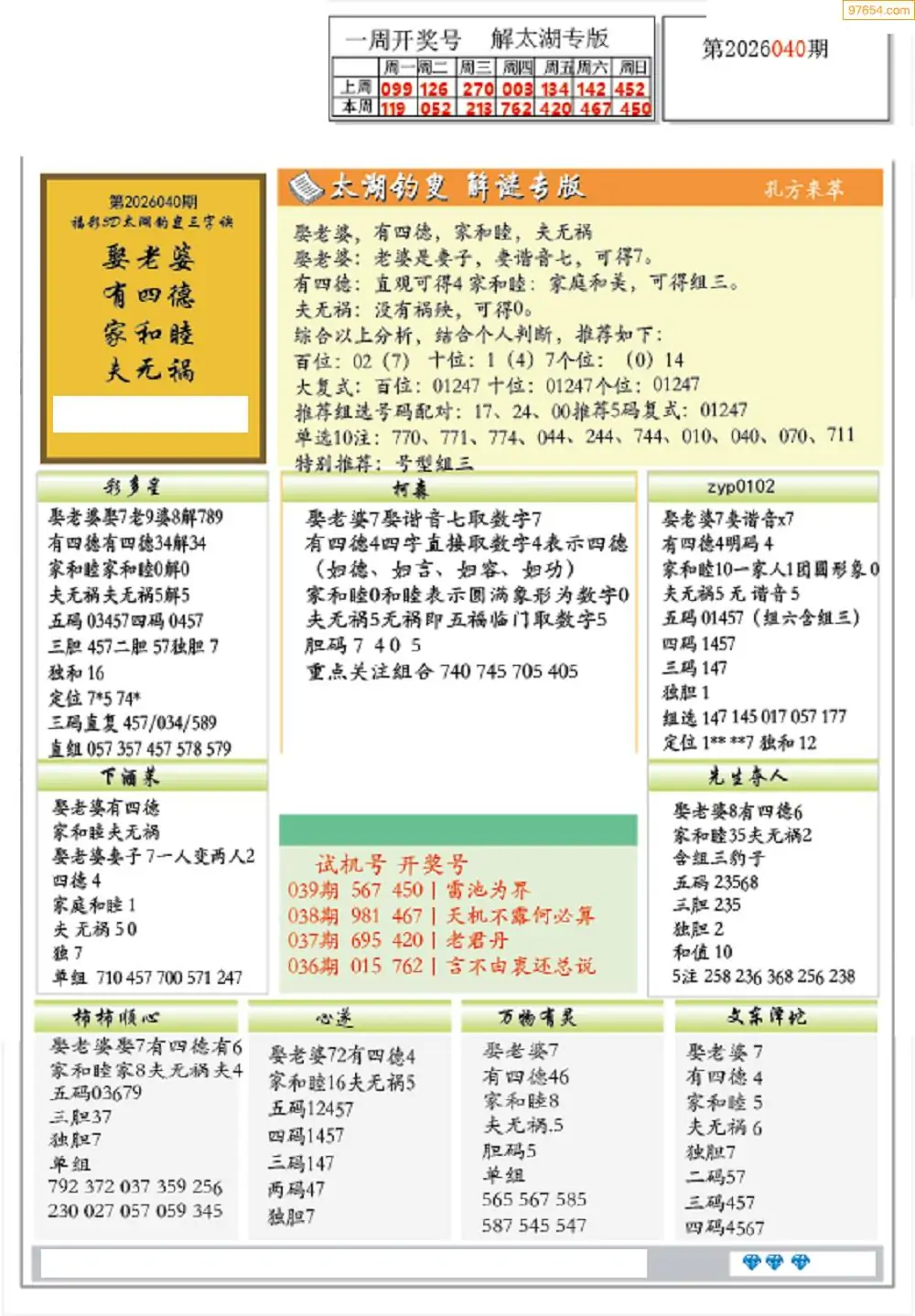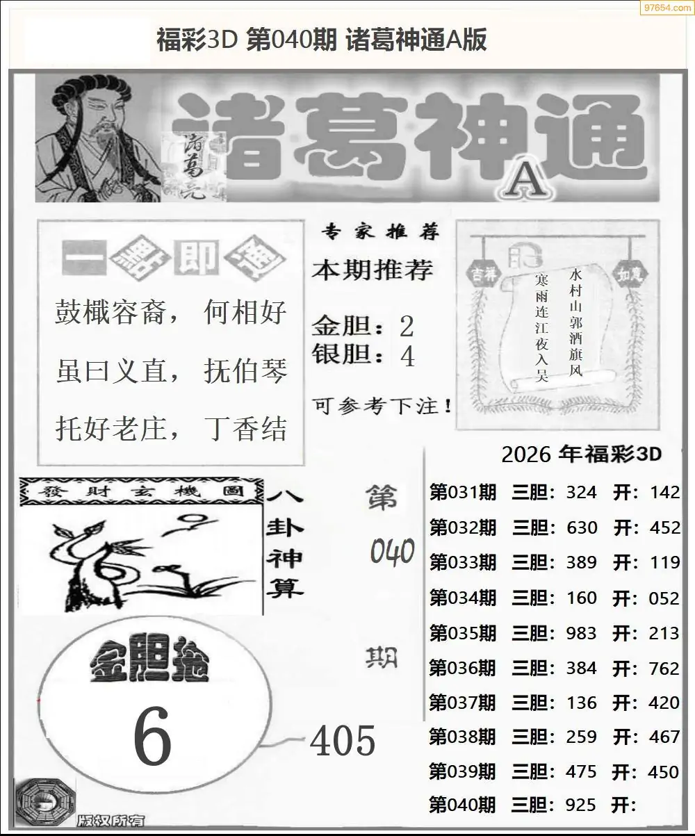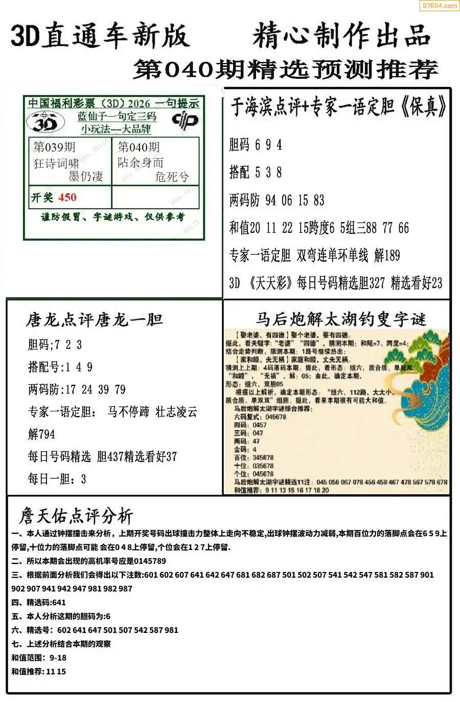 (2)26年040期本期3d图迷汇总_福彩3D图谜总汇图