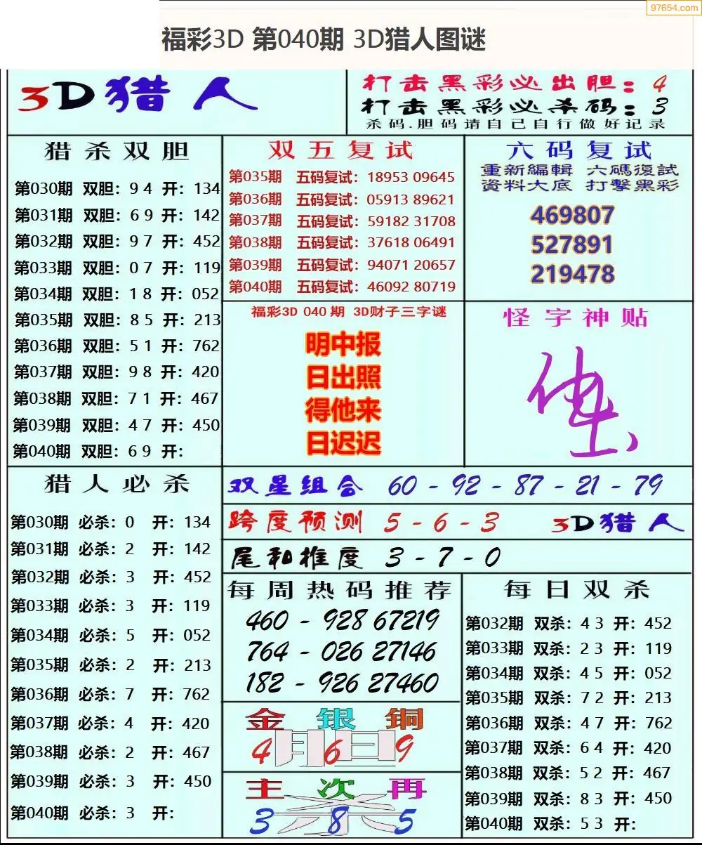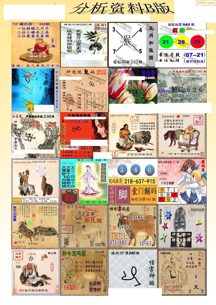 (3)2026040期3D预测总汇全图_福彩3d图谜字谜总汇