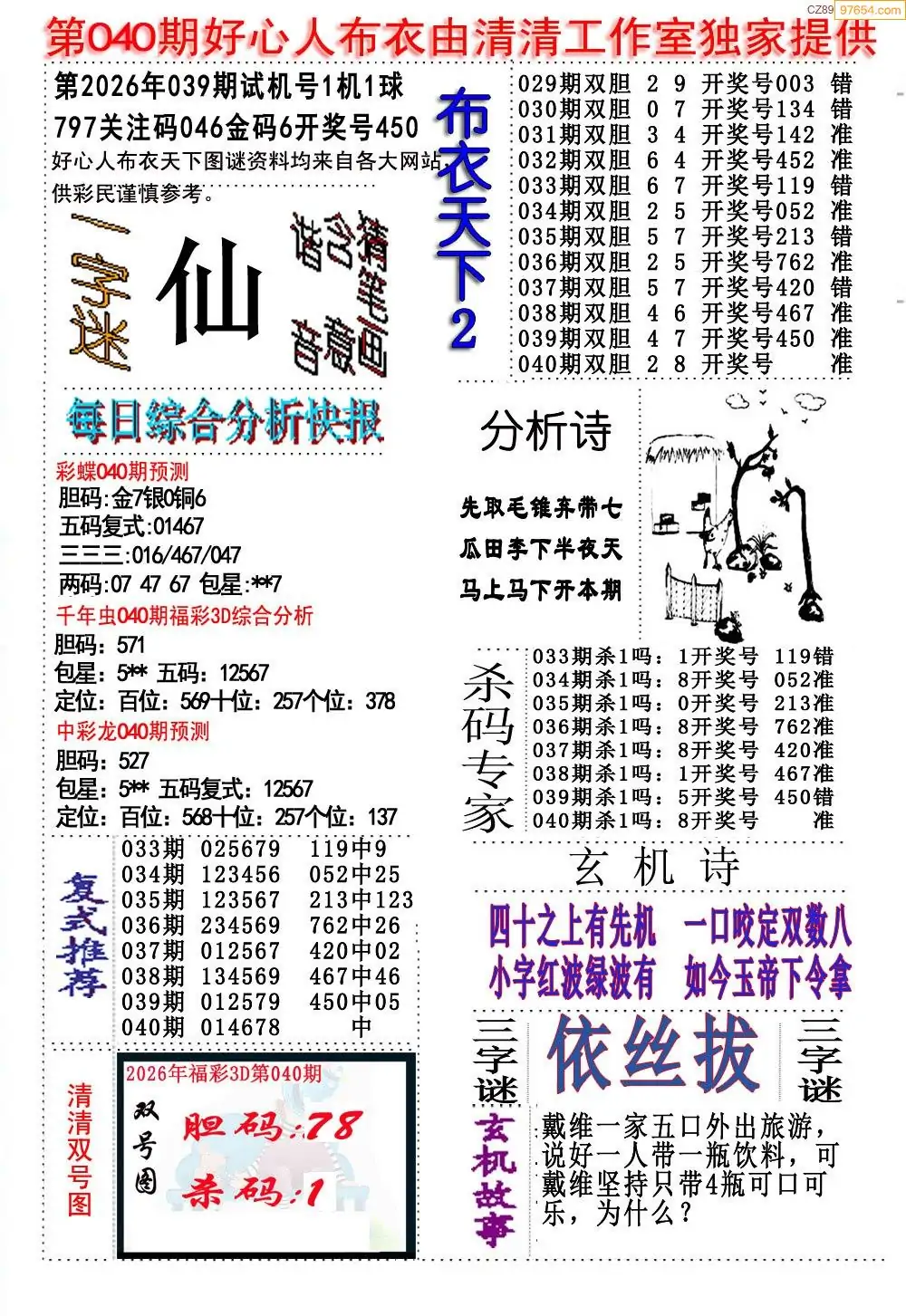 (5)26年040期福彩字谜图谜总汇