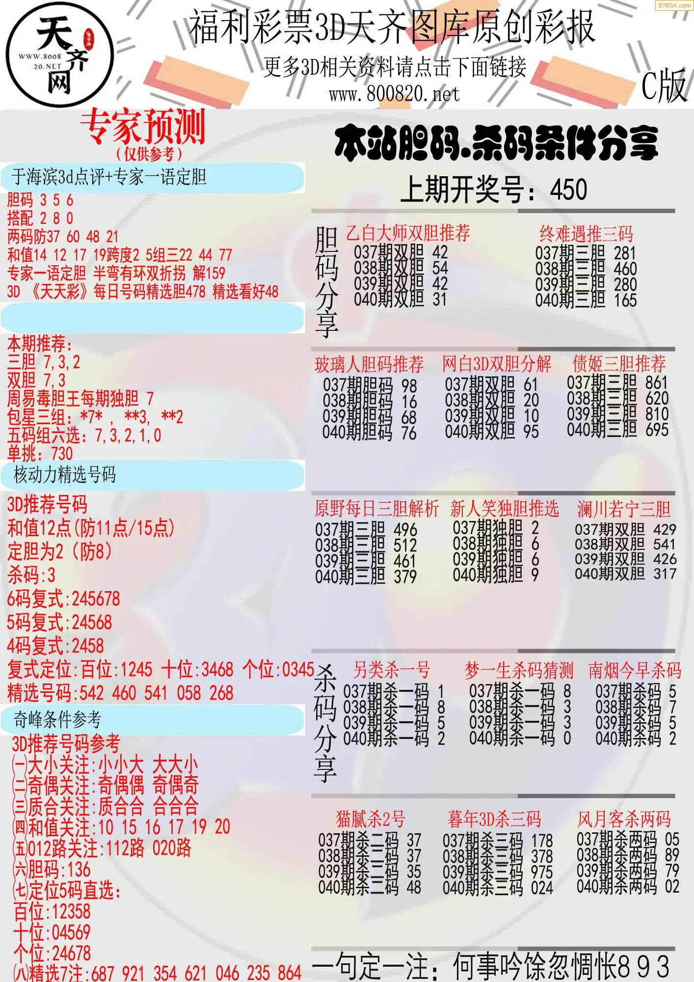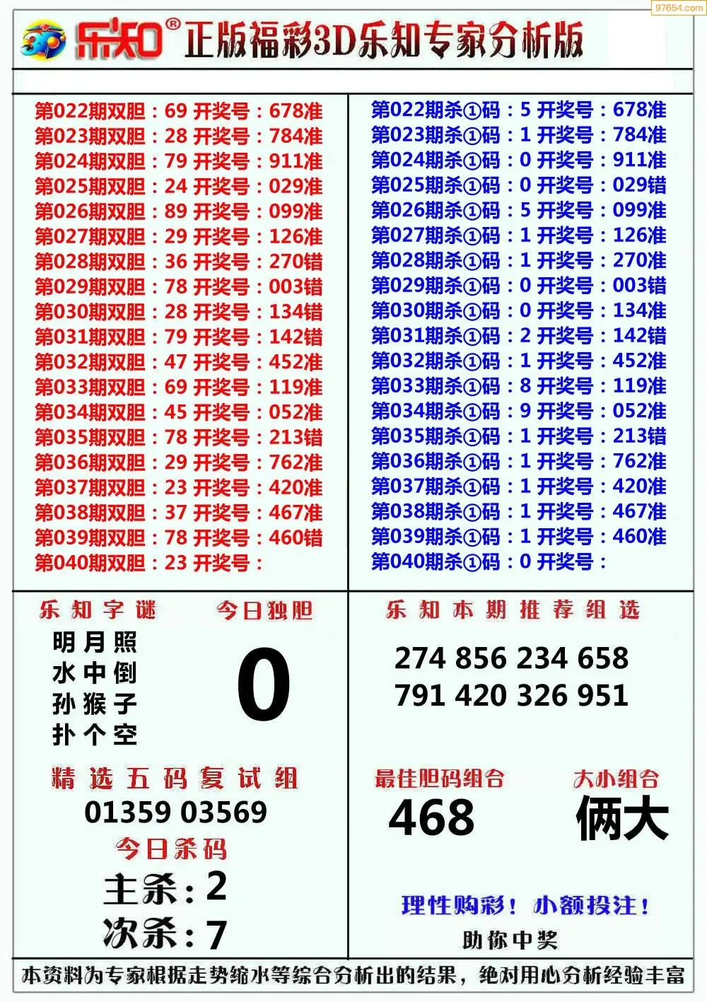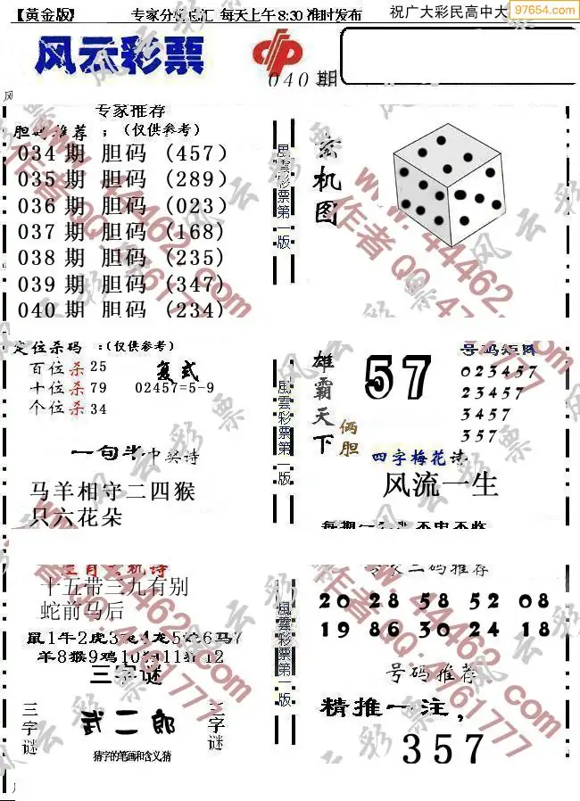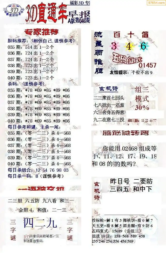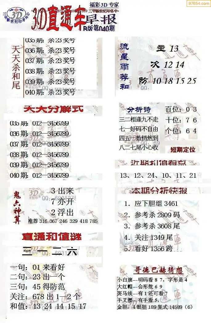 (8)26年039期今日3d各类彩报汇总