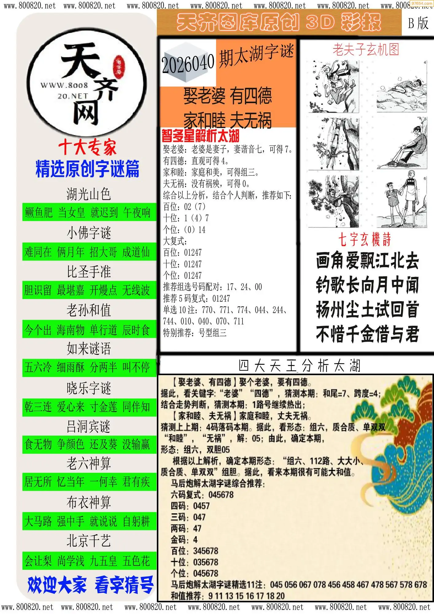 (7)26040期3D太湖图库图谜汇总