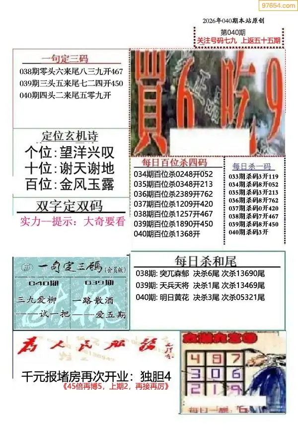 (9)26年040期当期全站杀号定胆图