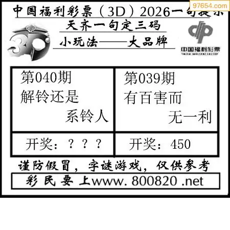 (8)26年040期今日3d各类彩报汇总