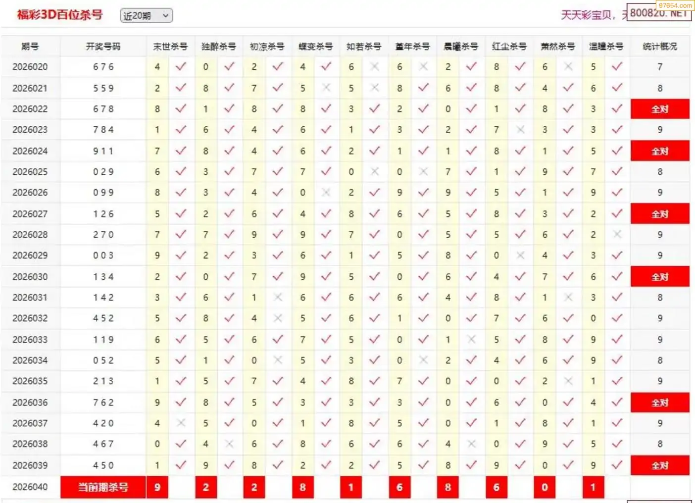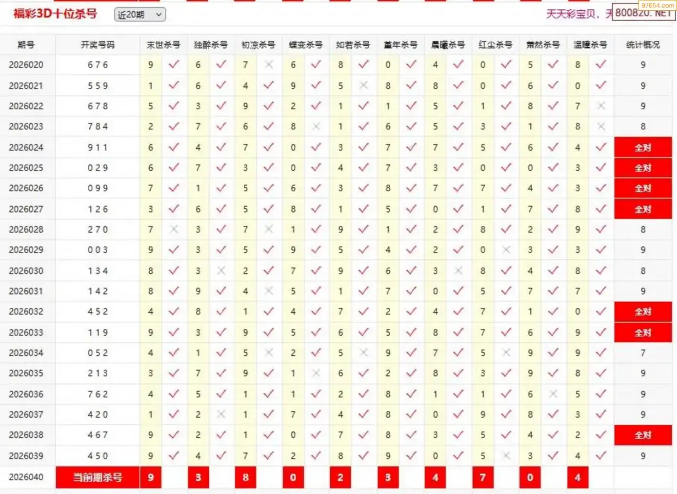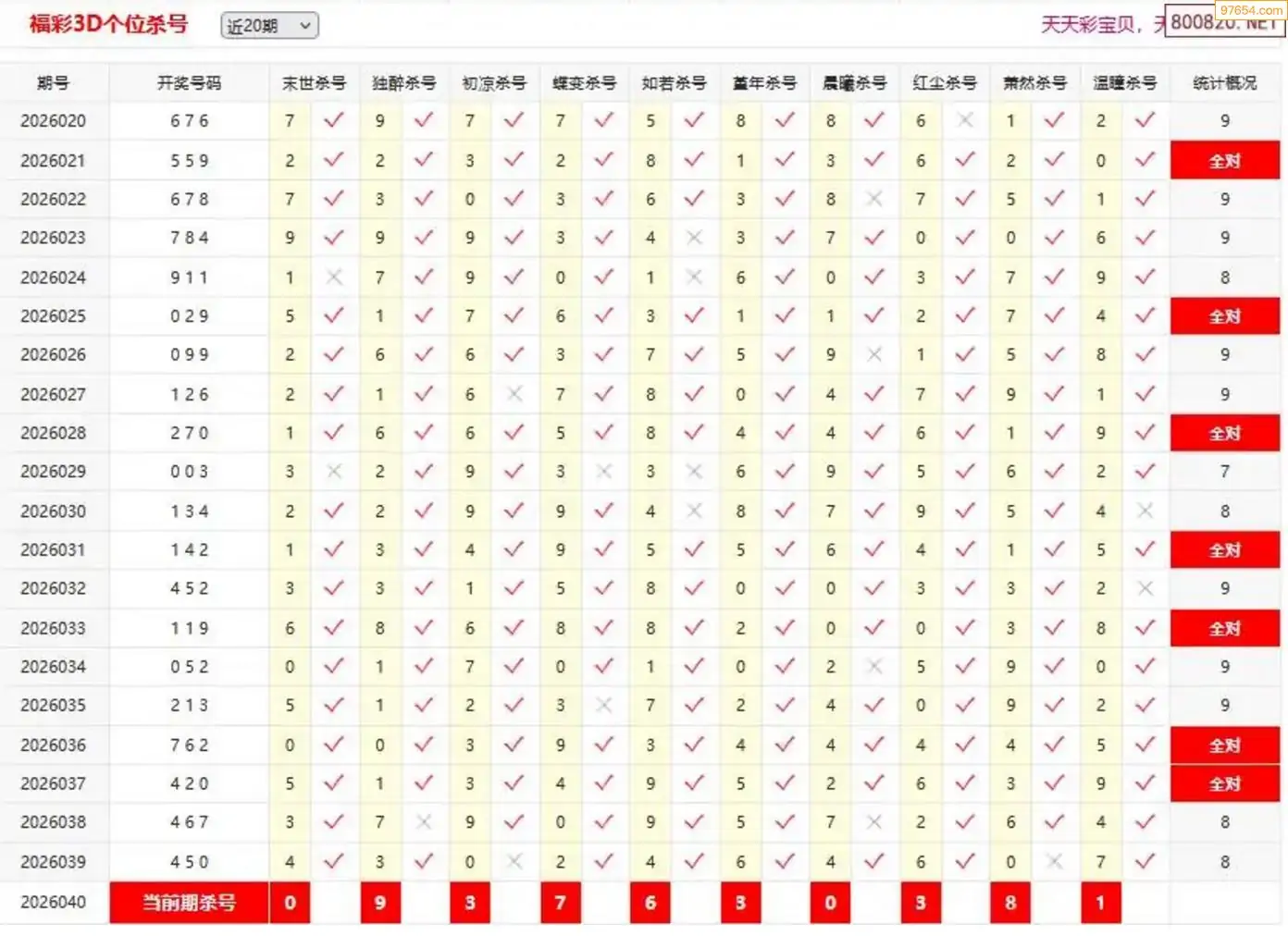 福彩3D盐都杂谈26年040期杀码猜想 7连中