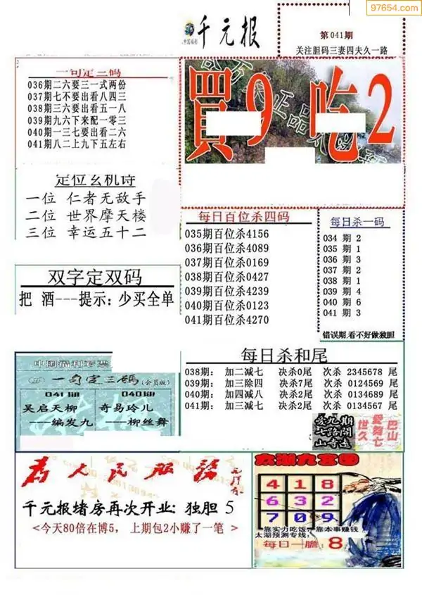 26年041期千元报每日推荐(新版)