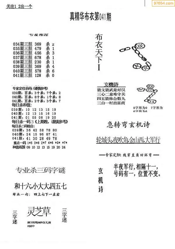 041期真版布衣神算专家推荐