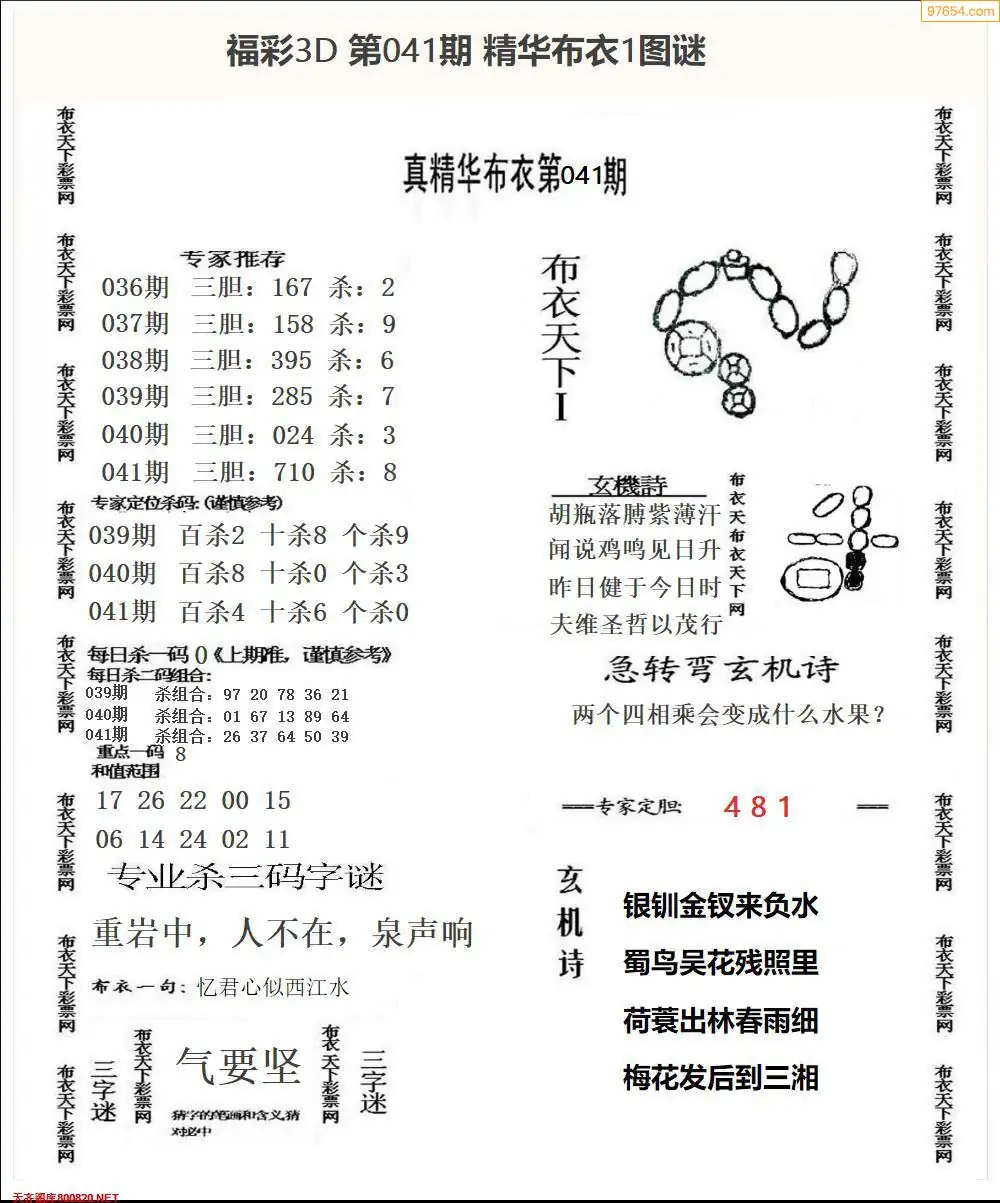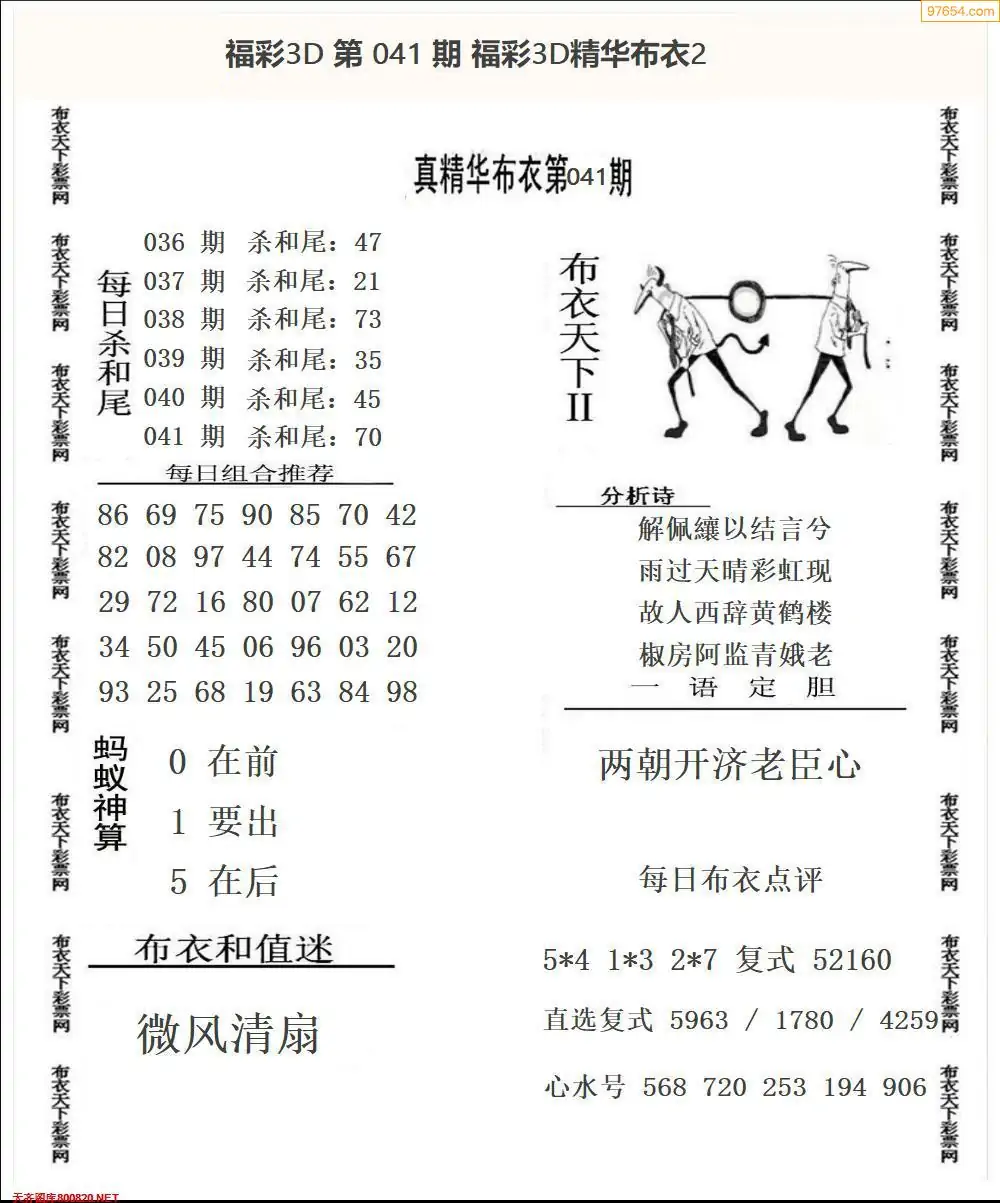 福彩041期3d真精华布衣+布衣早报(转载)