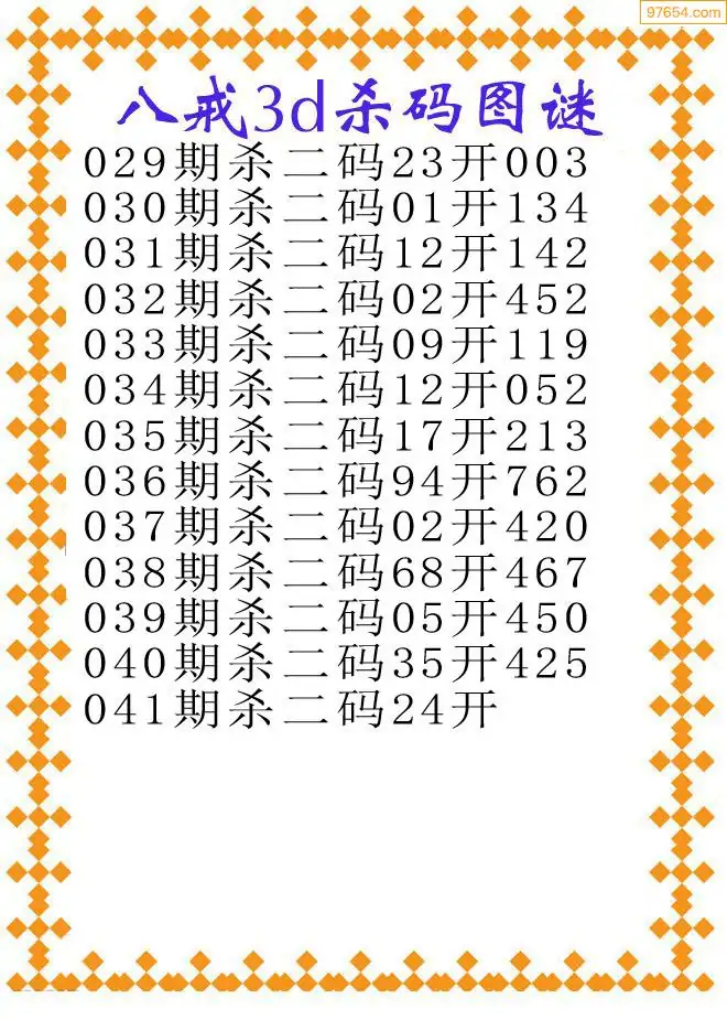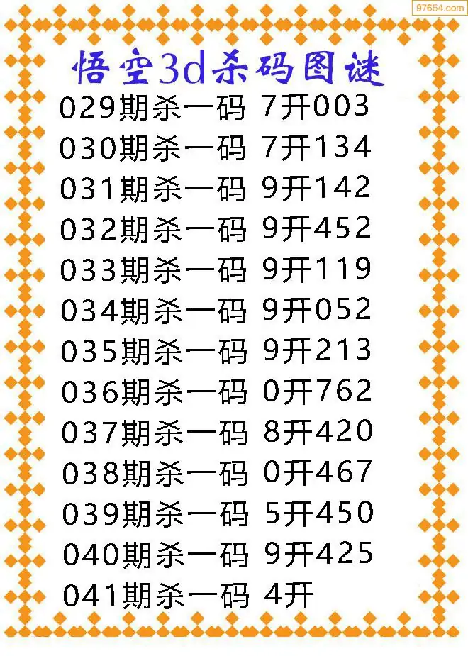 041期97654本站收集胆码出号预测