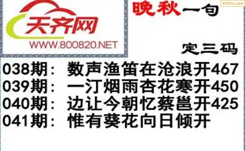 041期3D晚秋(和值)谜:后日雨水 D:本日看差