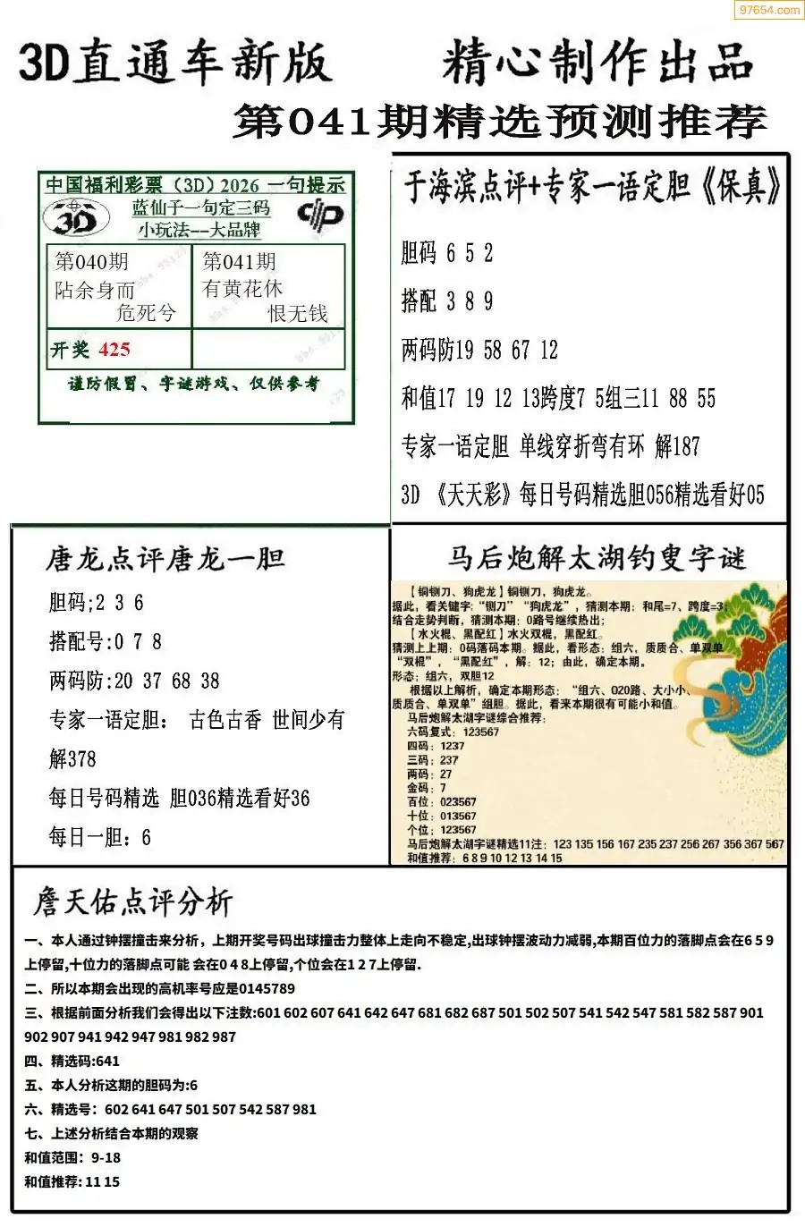 26年041期3D各板块资料整合汇总
