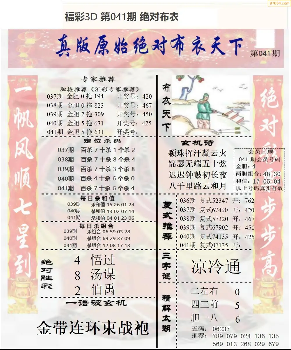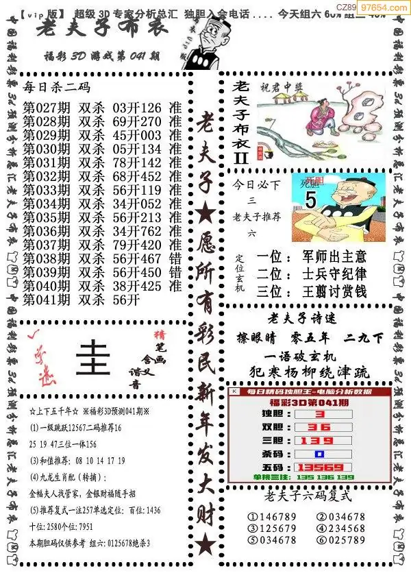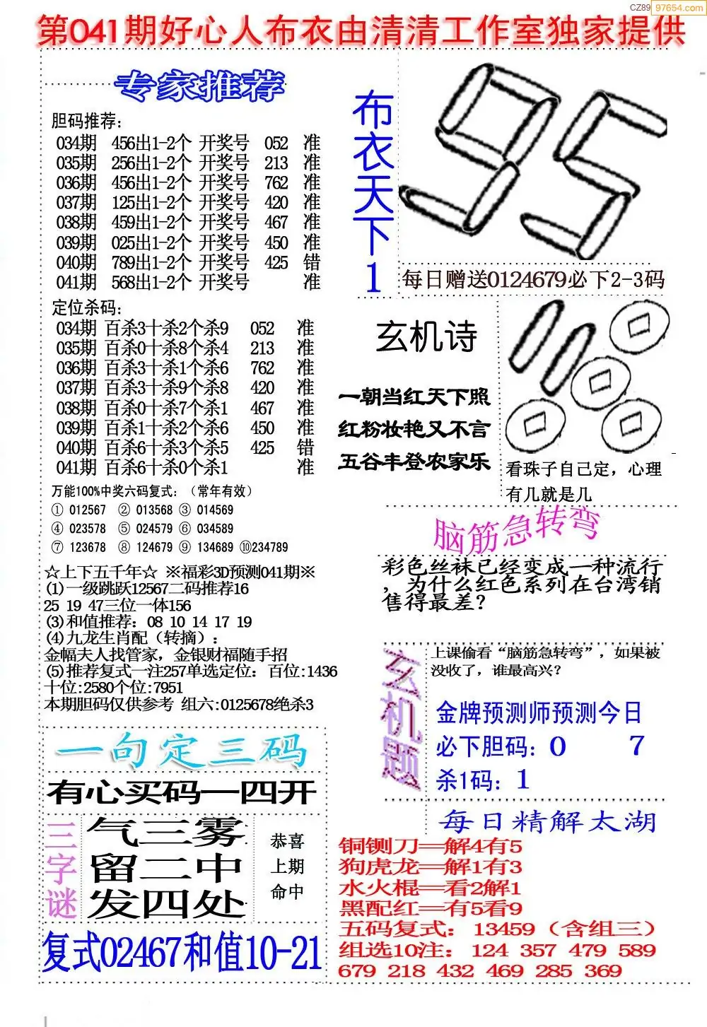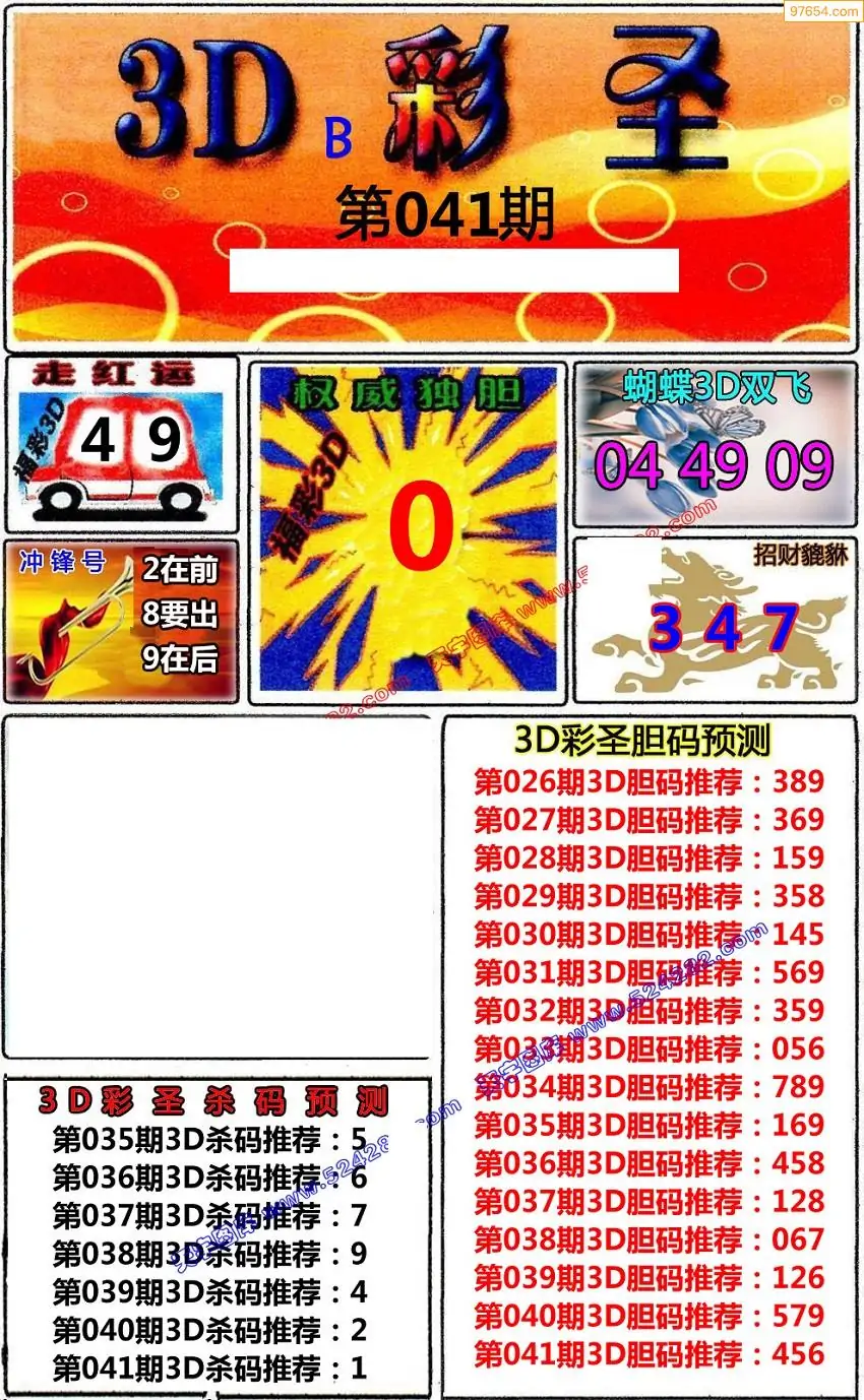 (8)26年041期今日3d各类彩报汇总