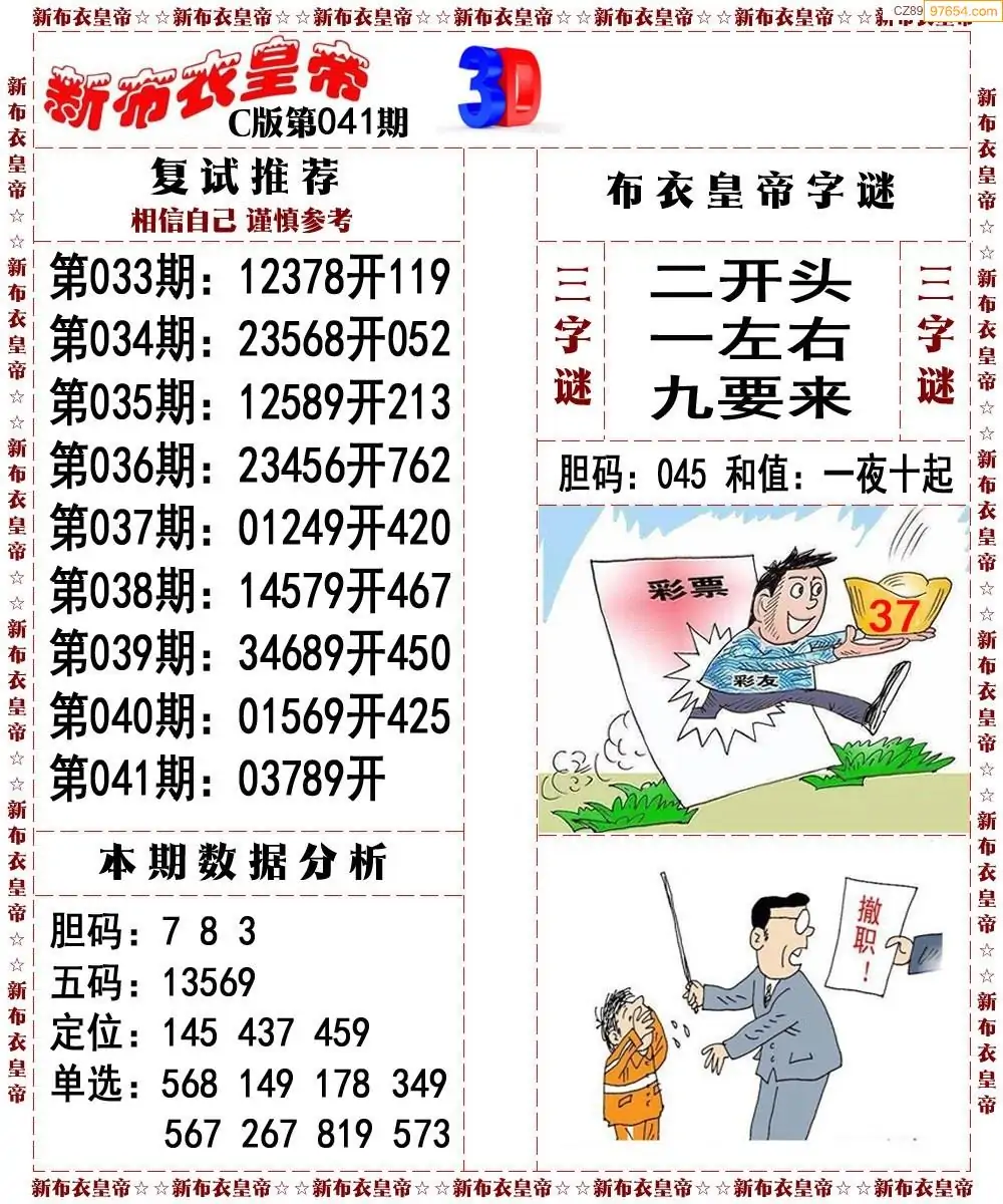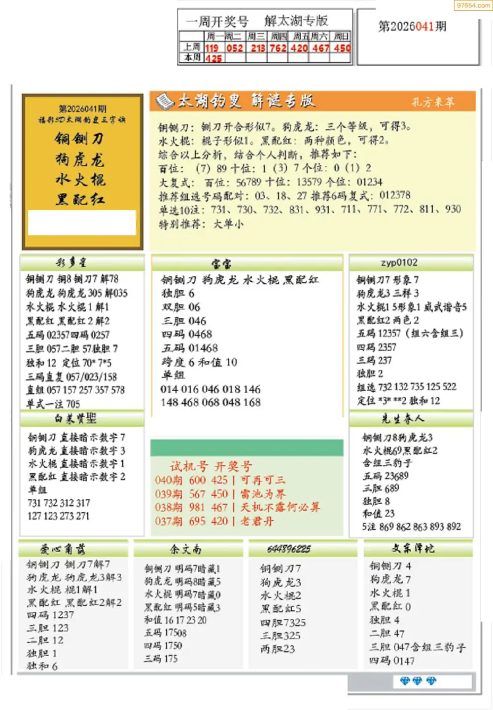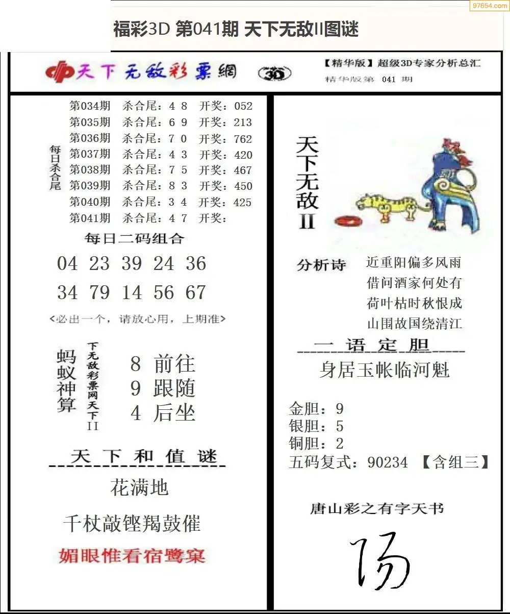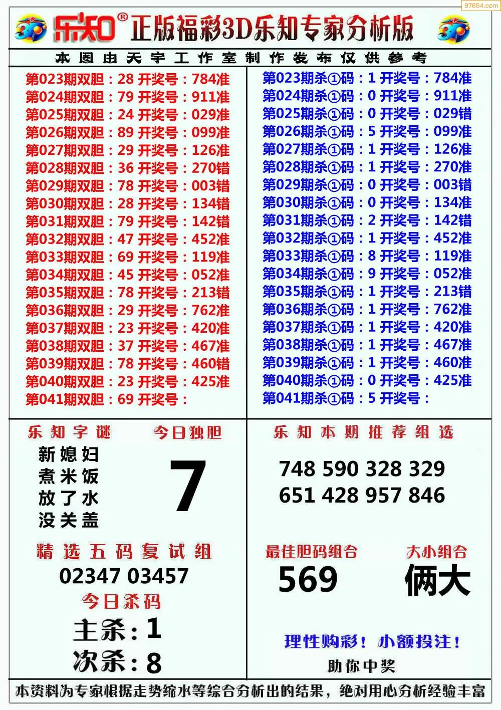 (8)26年041期今日3d各类彩报汇总