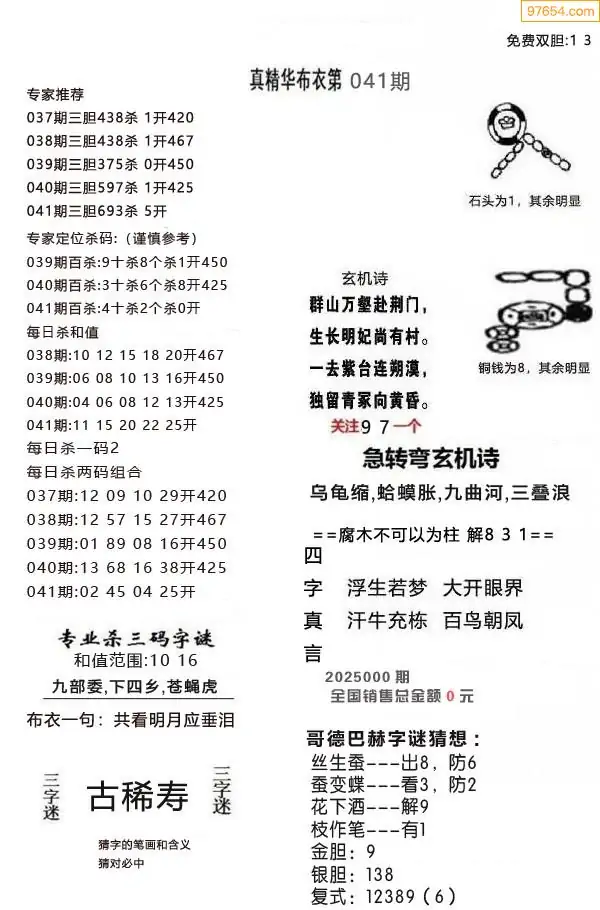 (2)26年041期本期3d图迷汇总_福彩3D图谜总汇图