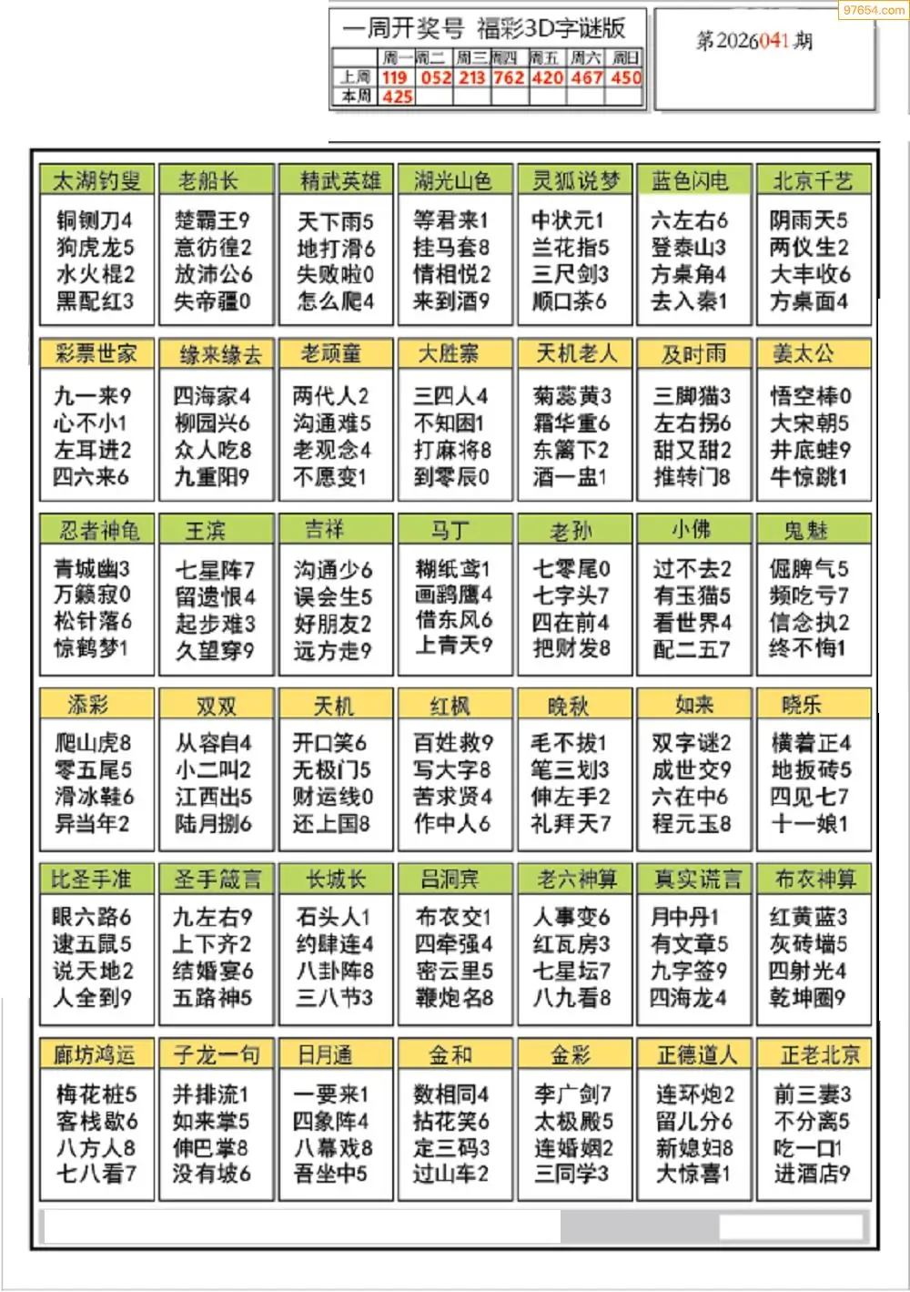 (5)26年041期福彩字谜图谜总汇