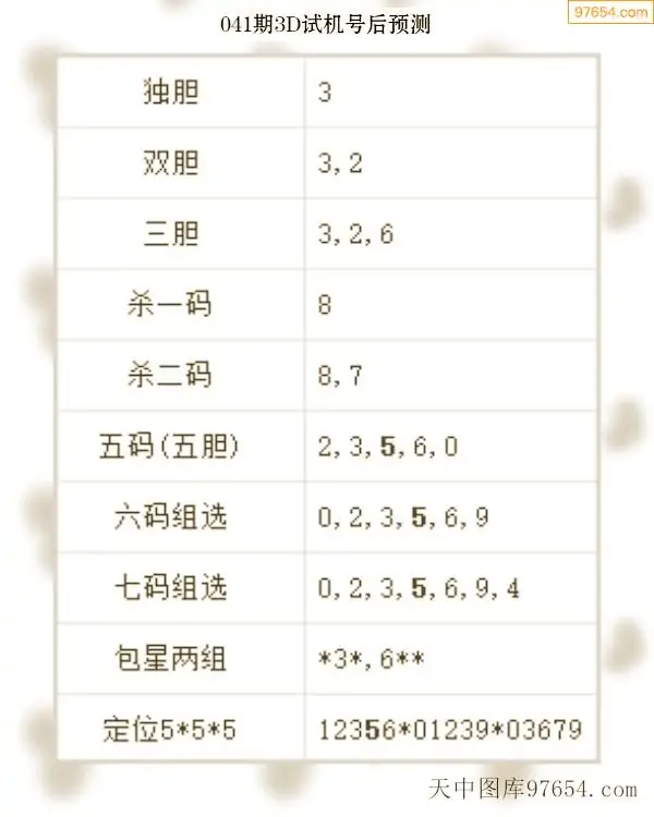 041期西南胆王预测本期3D开奖结果