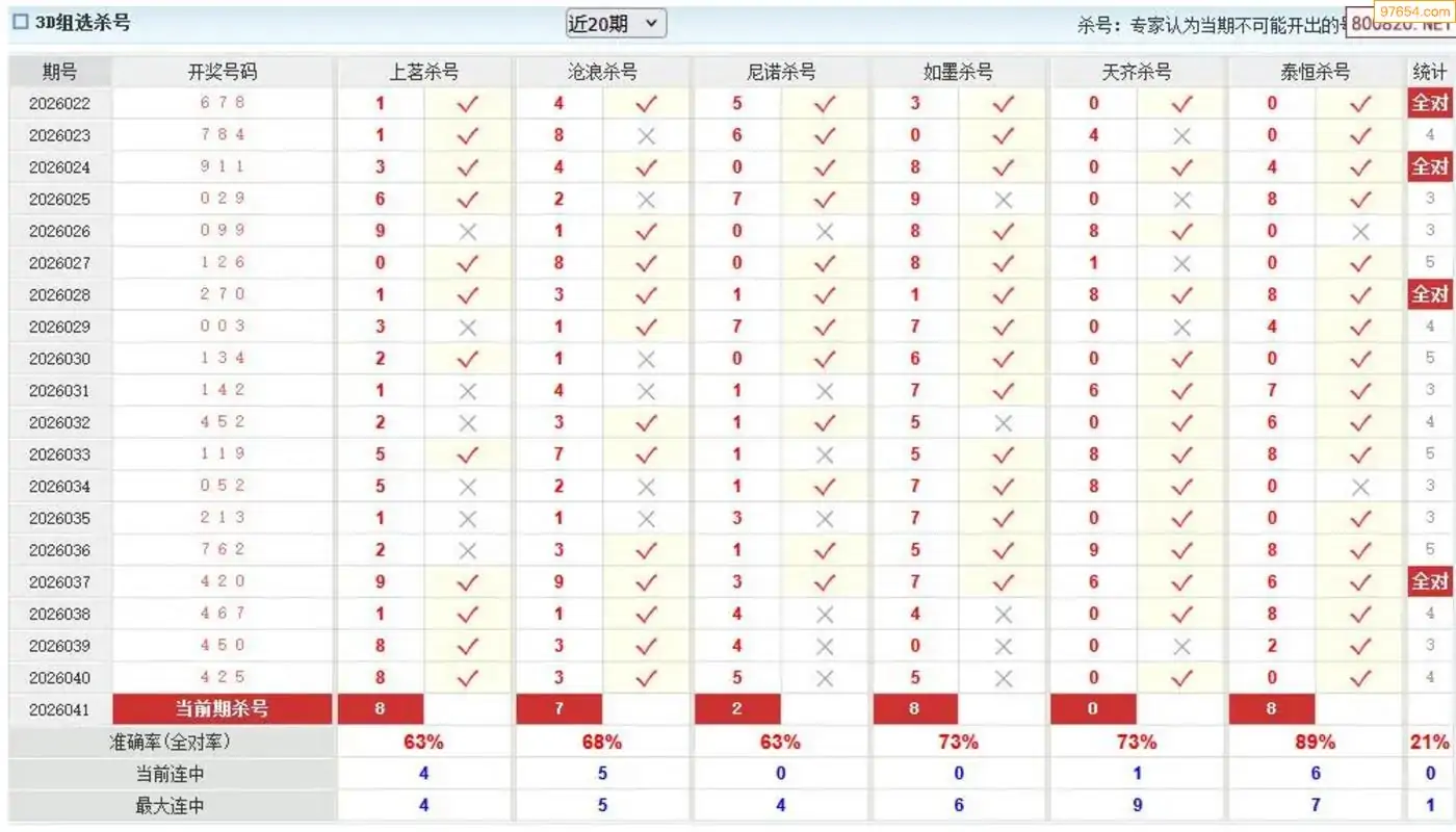 福彩3d澳客专家杀组选26年041期