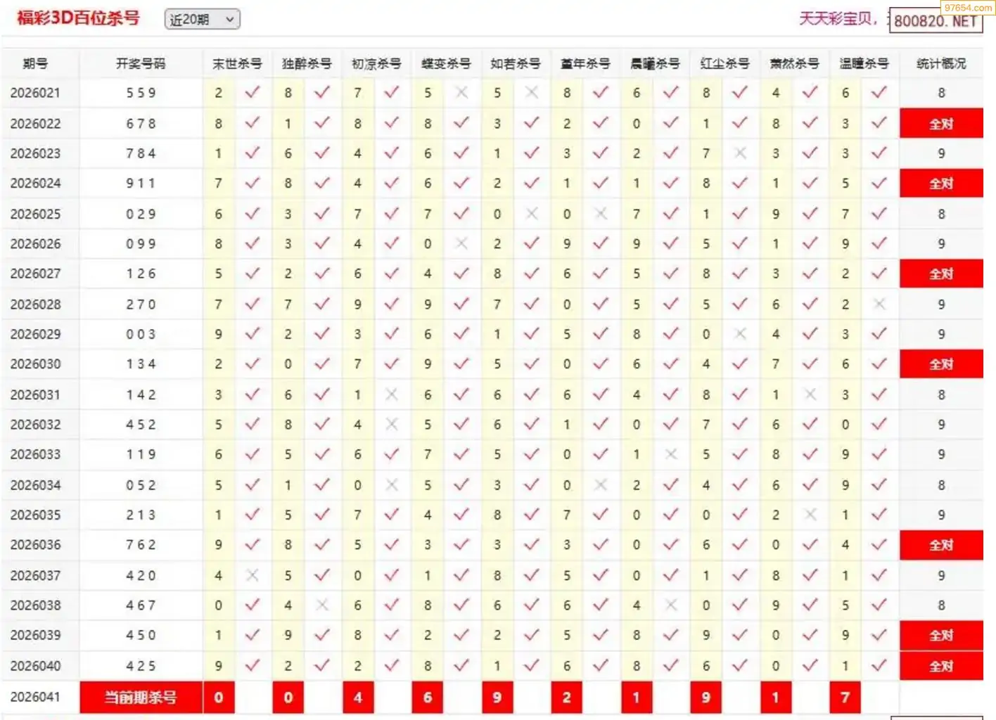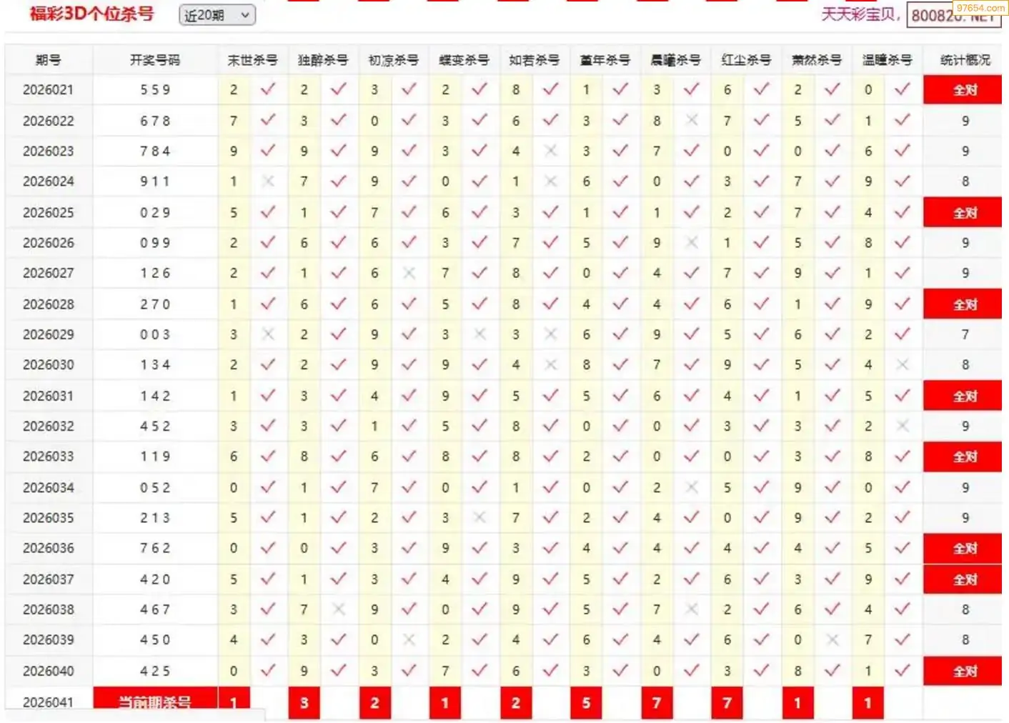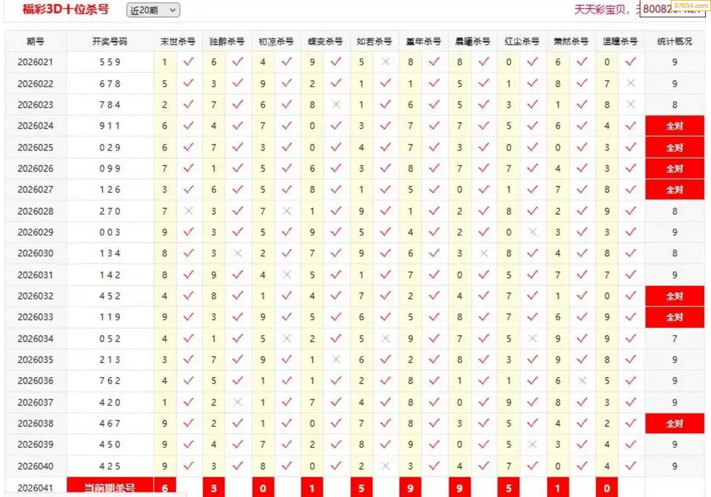 3D041期天中财神原创杀码条件汇总