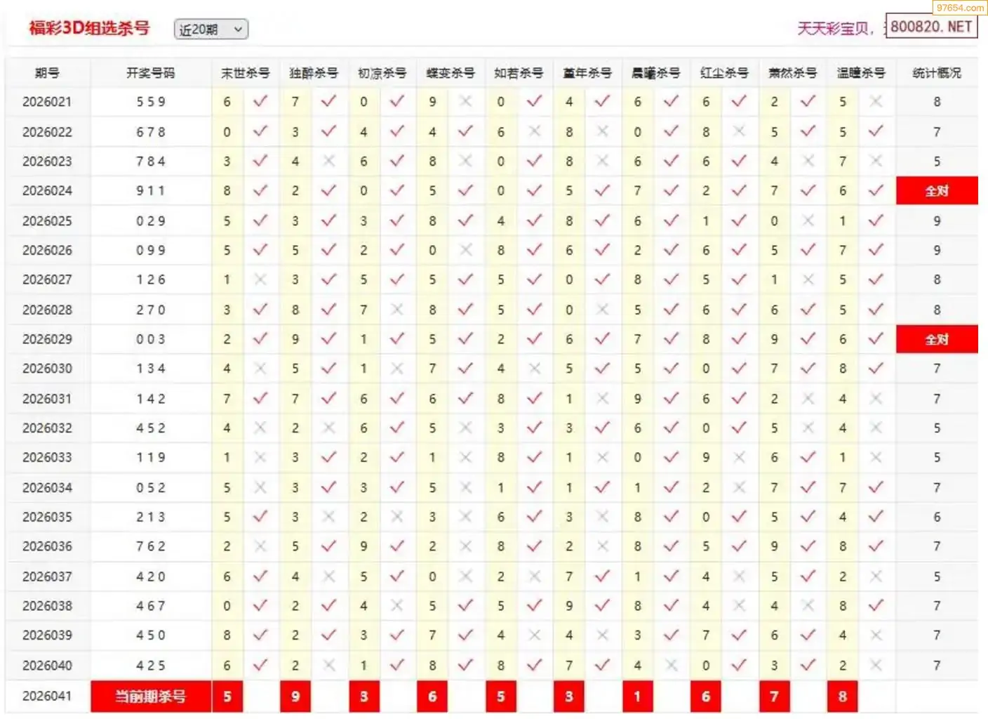 3D041期天中财神原创杀码条件汇总