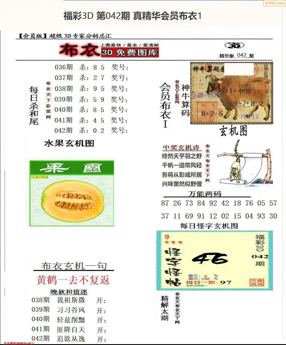 福彩042期3d真精华布衣+布衣早报(转载)