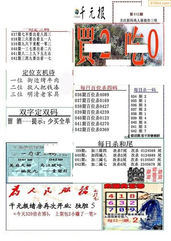26年042期千元报每日推荐(新版)