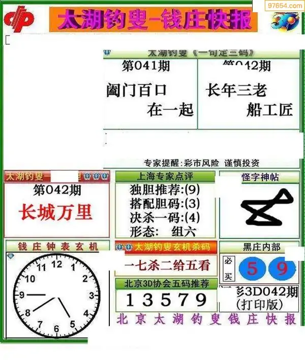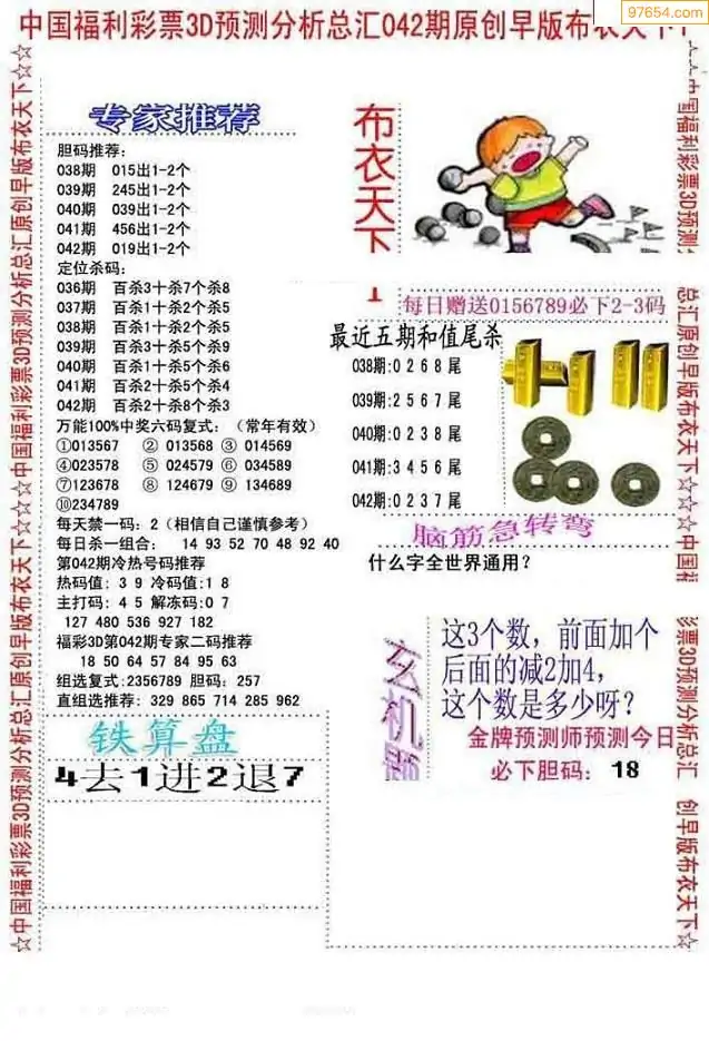 福彩3D042期天牛彩吧套图整合总汇