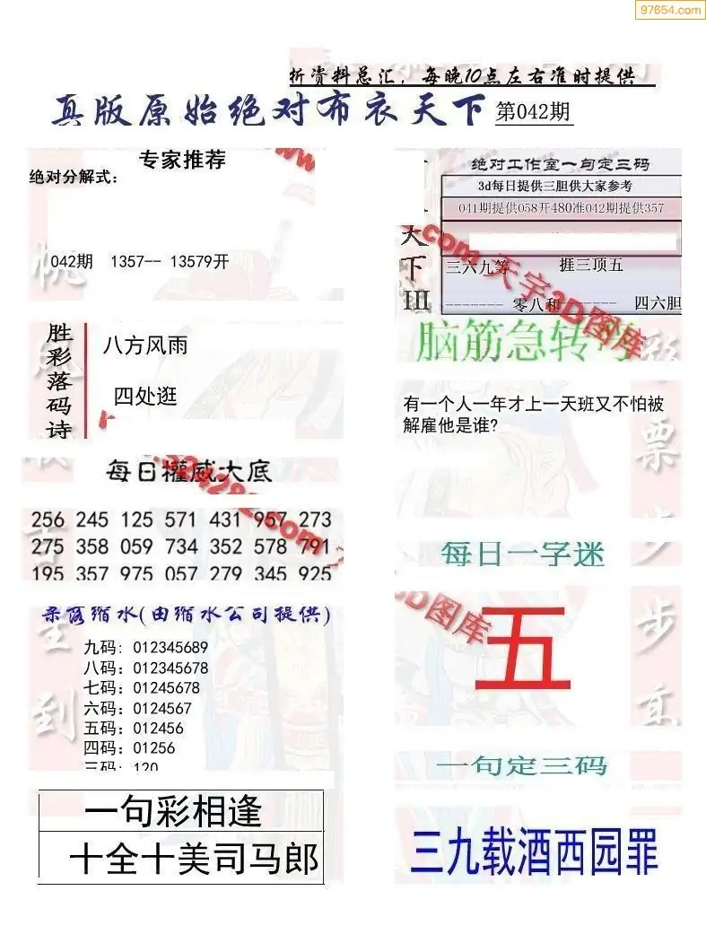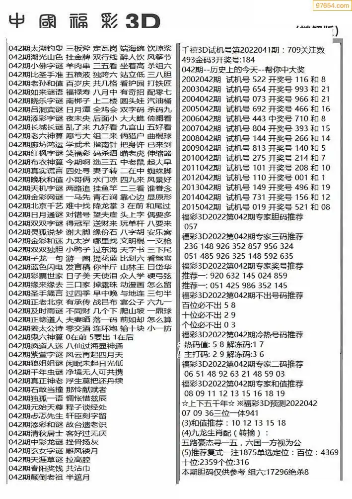 (3)2026042期3D预测总汇全图_福彩3d图谜字谜总汇