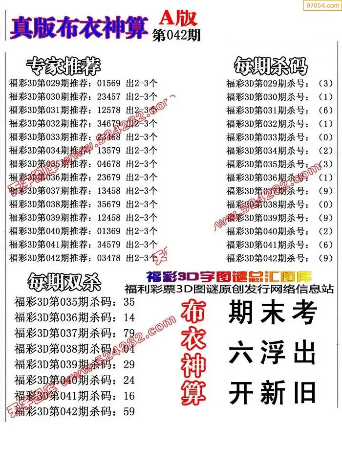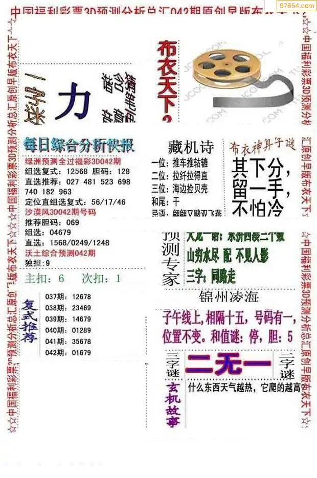 (2)26年042期本期3d图迷汇总_福彩3D图谜总汇图