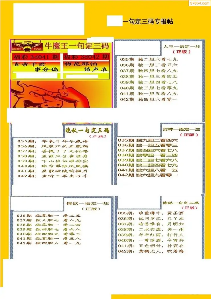 (8)26年041期今日3d各类彩报汇总