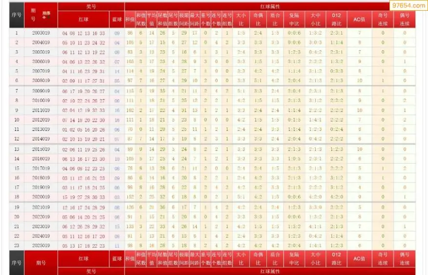019期双色球历史同期图表+走势图