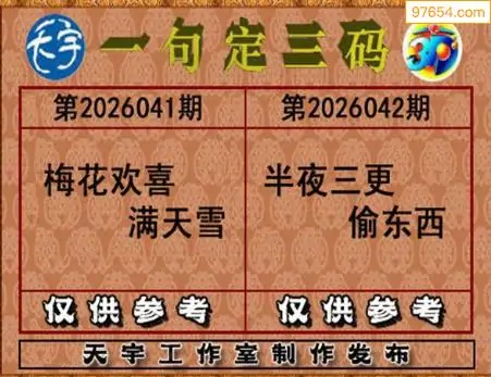 26042期天宇一句定三码3D图库