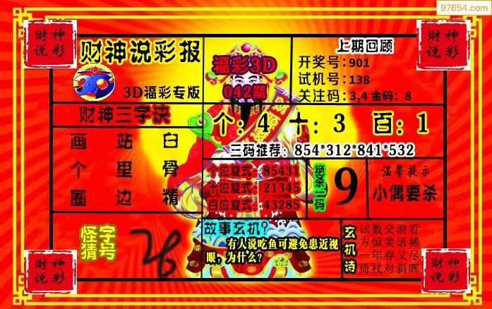 26年042期财神说彩3D综合图(原创)_3d财神到财神送胆