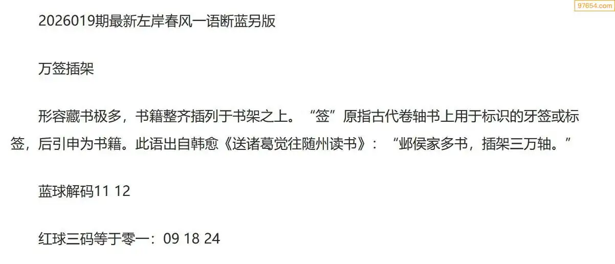 左岸春风另版双色球26年019期一语断蓝