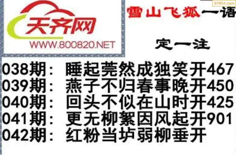 彩票3d字谜042期雪山飞狐一语定一注