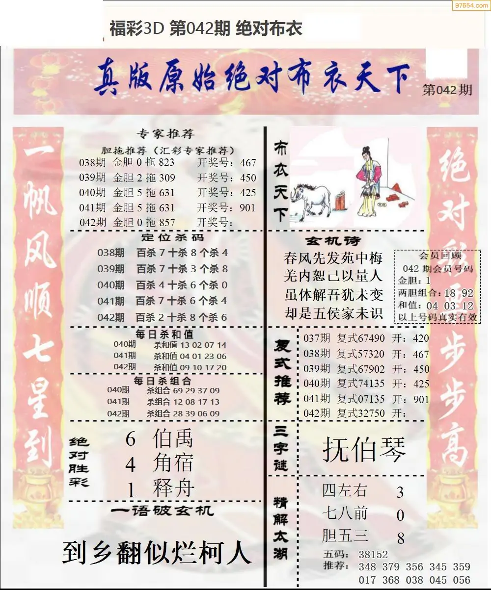 042期绝对布衣3d新版1