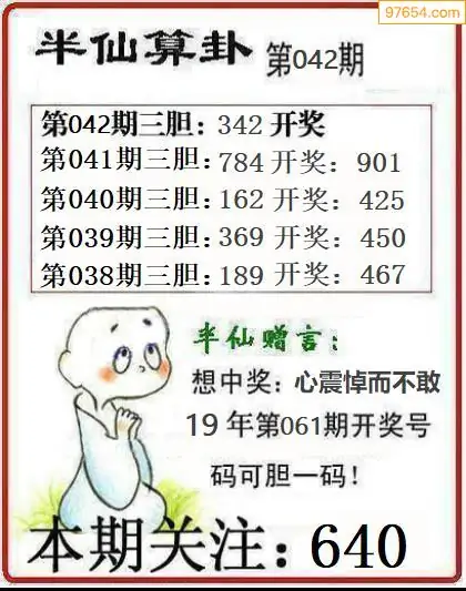 042期97654本站收集胆码出号预测