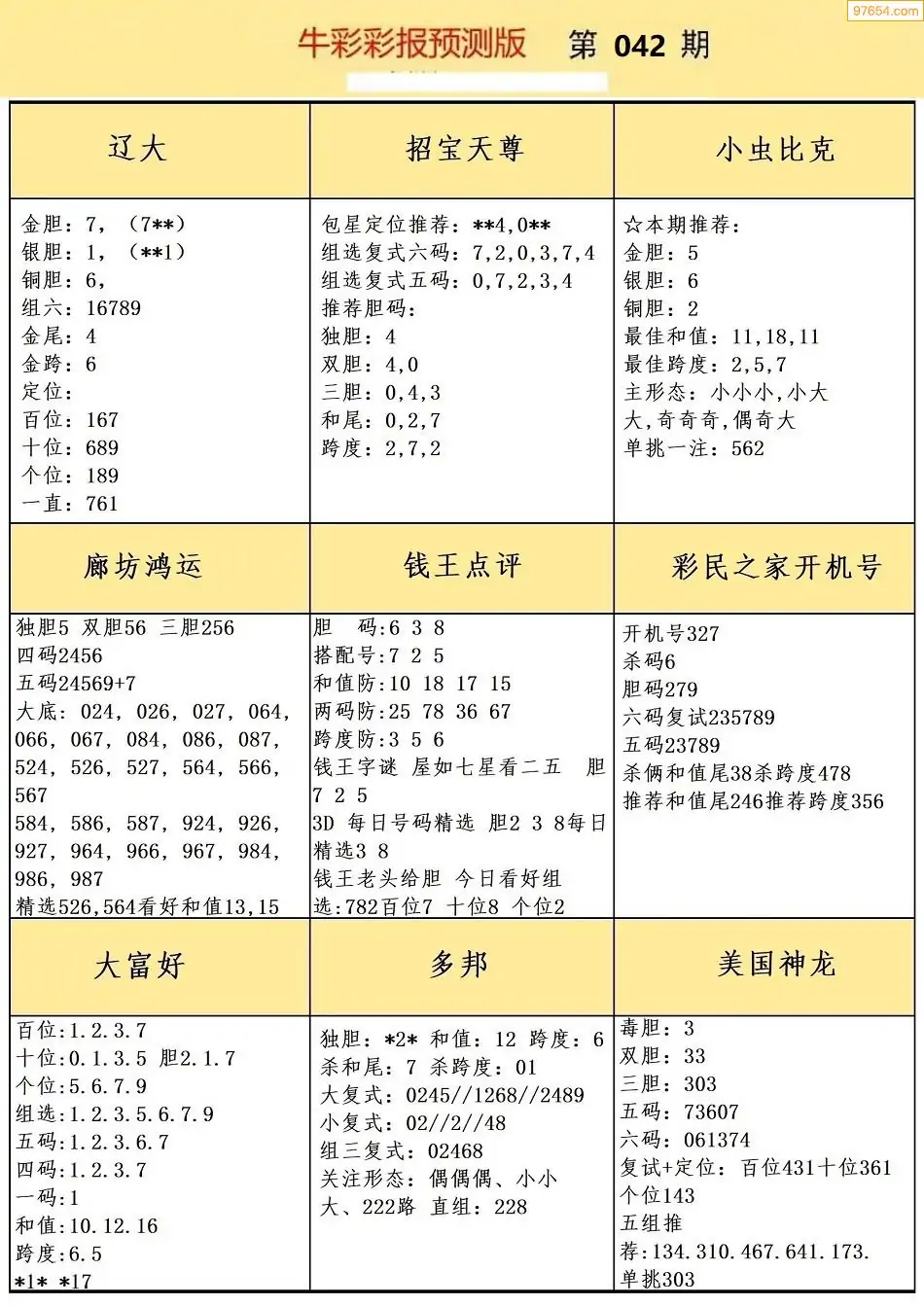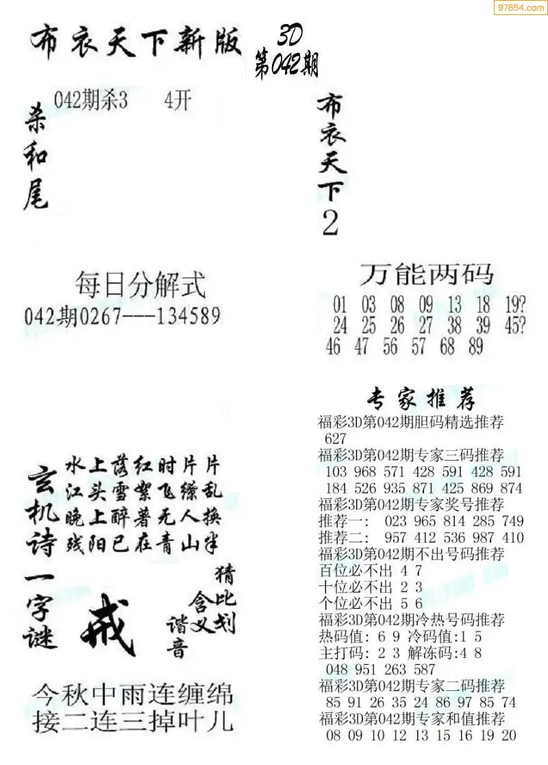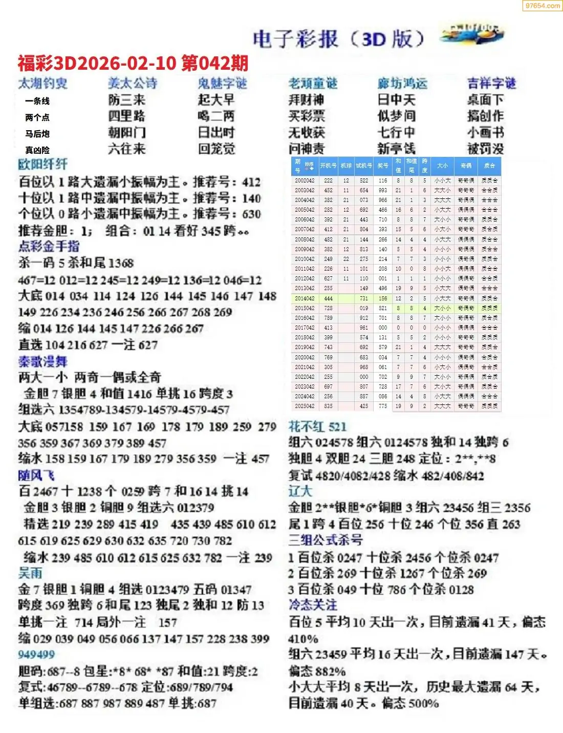 (8)26年042期今日3d各类彩报汇总