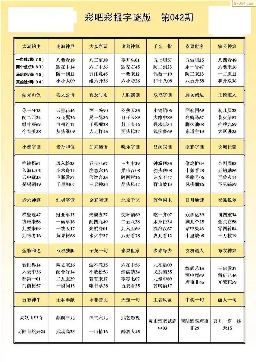 (5)26年042期福彩字谜图谜总汇