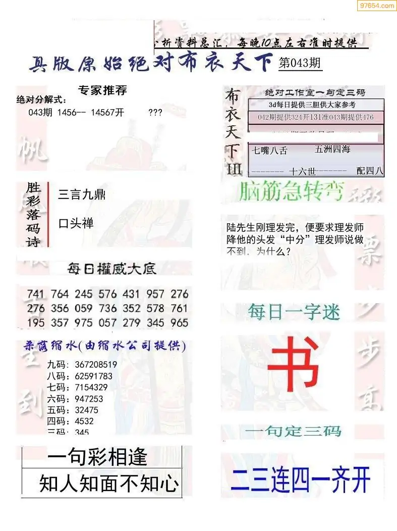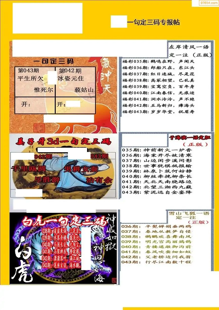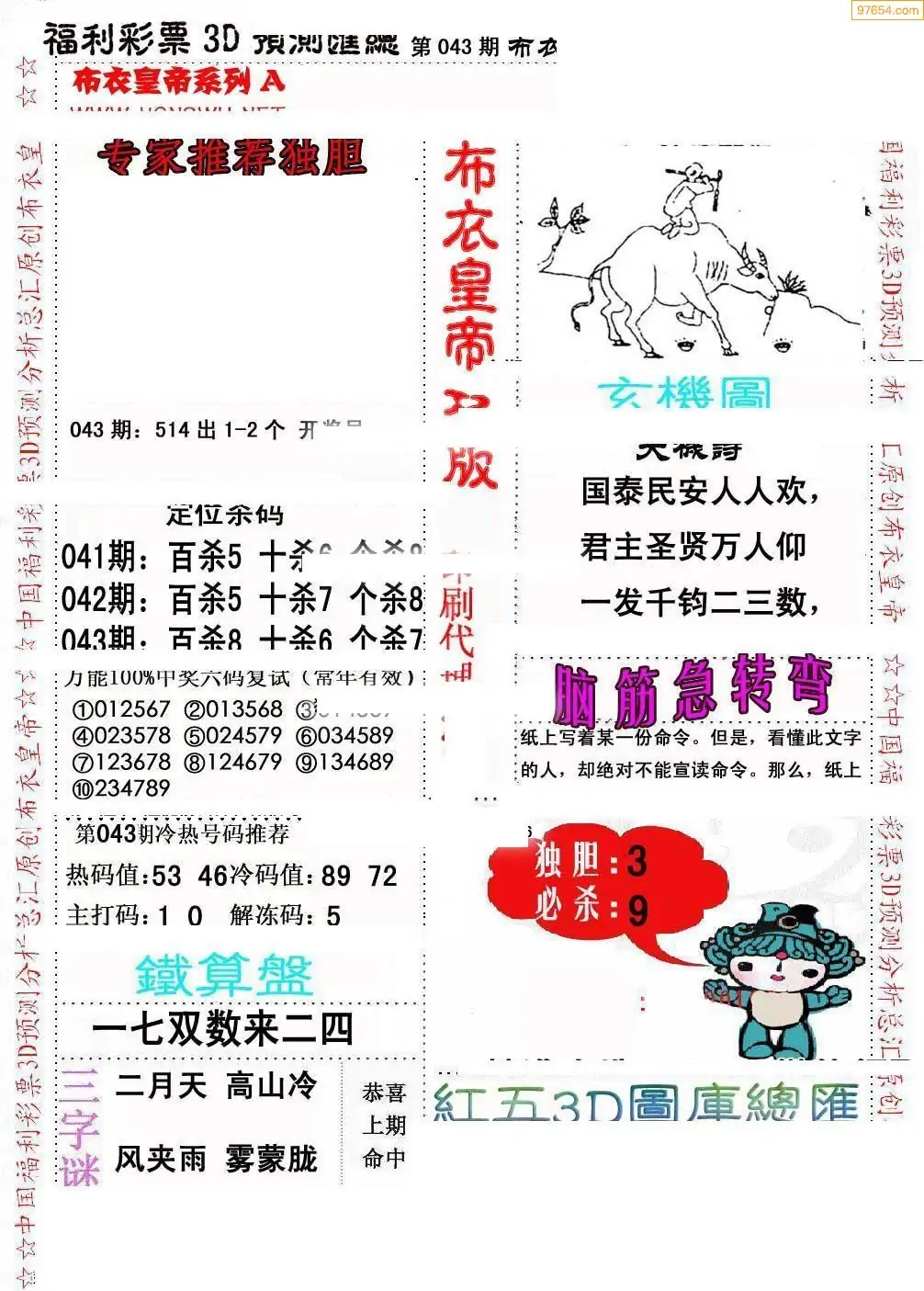 (2)26年043期本期3d图迷汇总_福彩3D图谜总汇图
