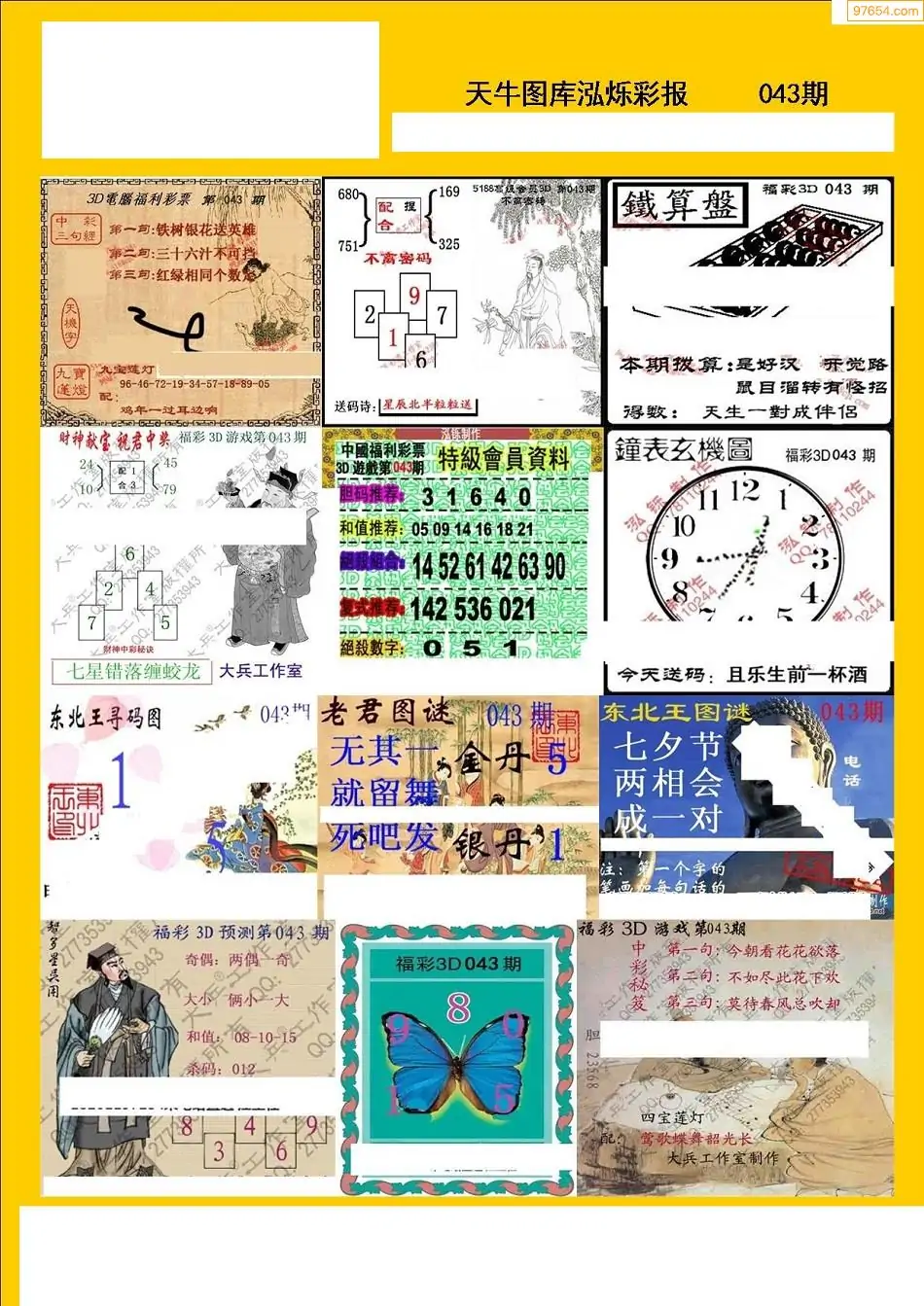 福彩3D043期天牛彩吧套图整合总汇