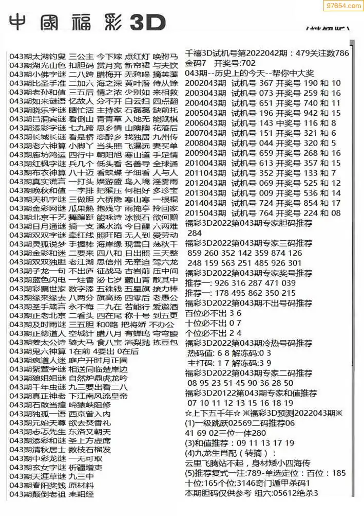 26年043期3D各板块资料整合汇总