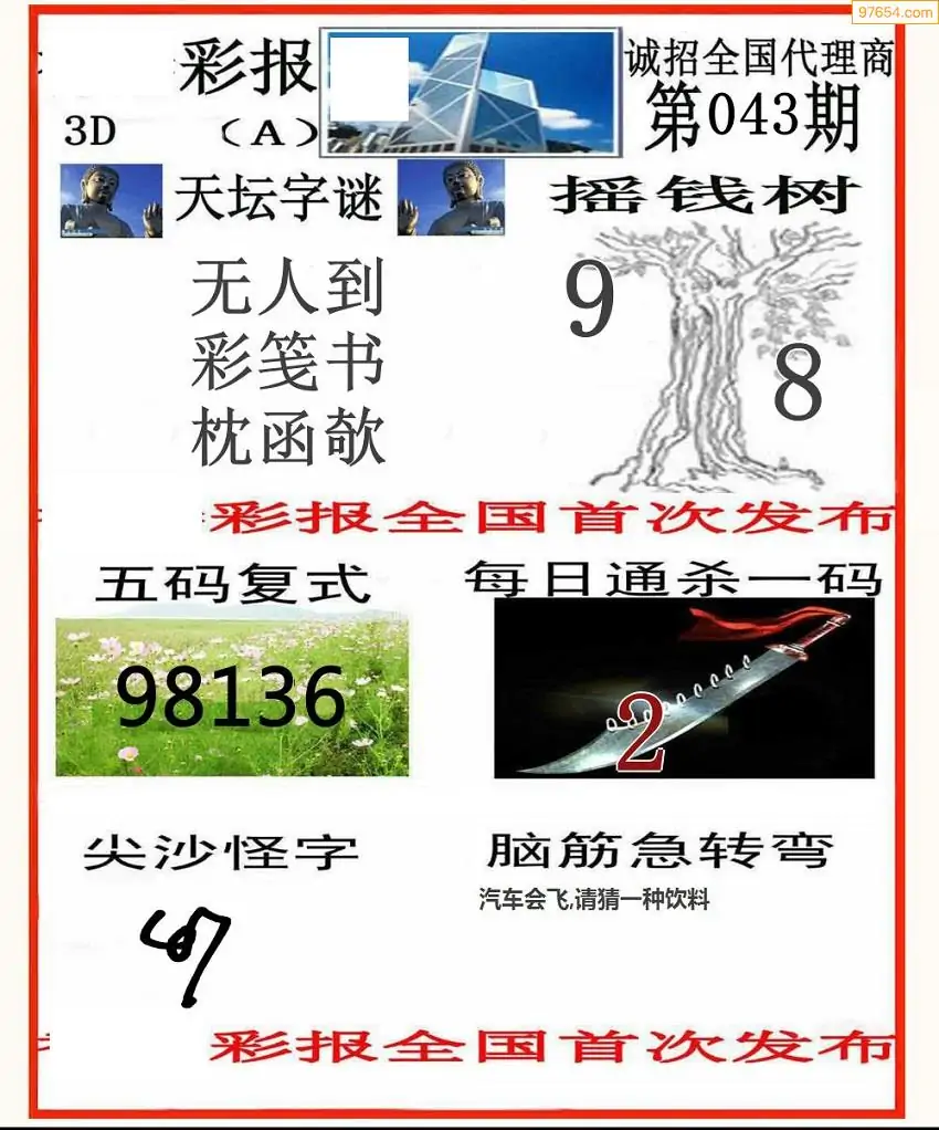 043期福彩天机壁怪字图