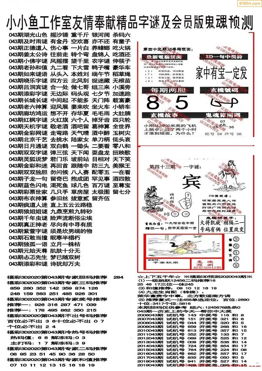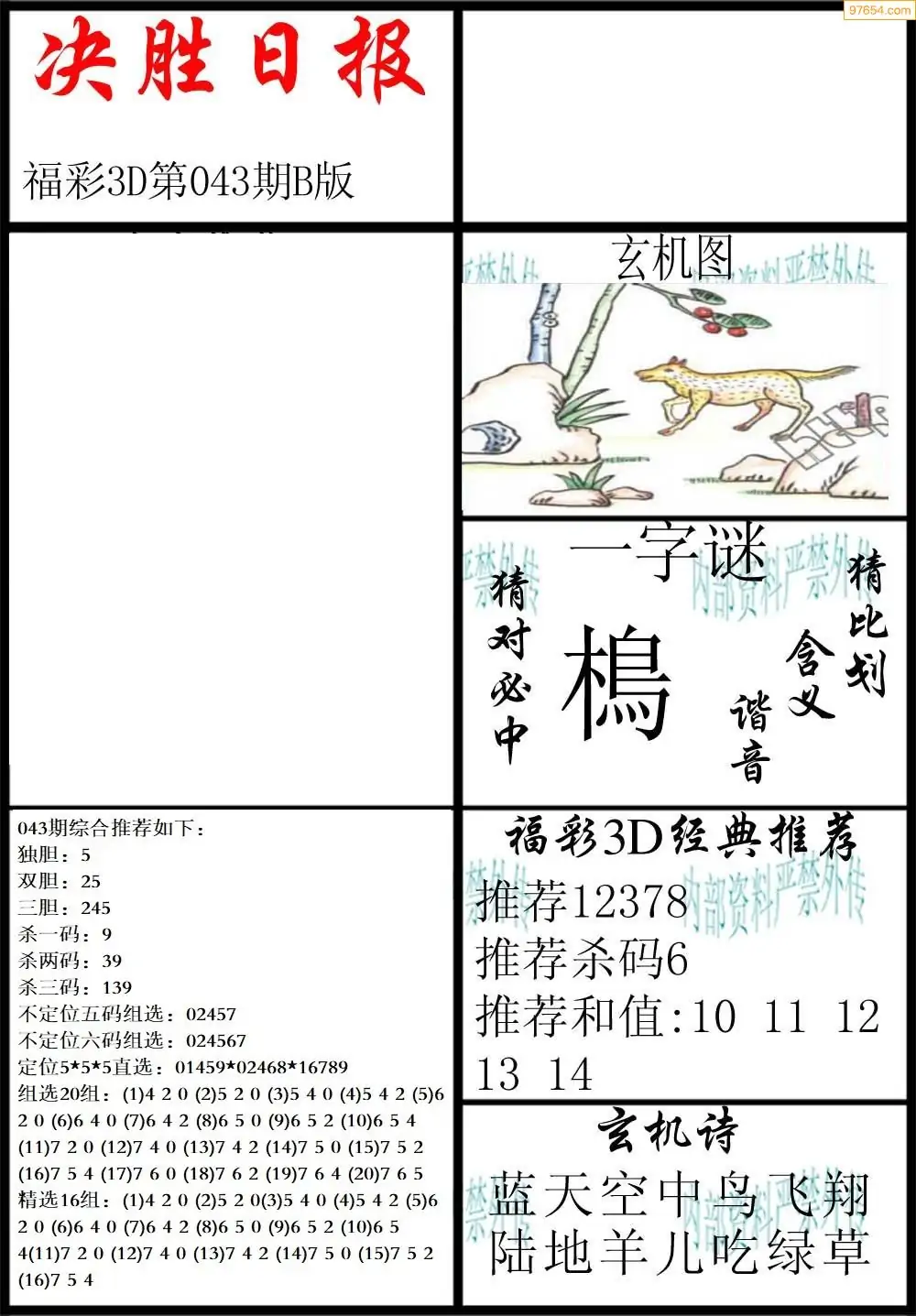 26年043期3d选号彩报图谜画谜